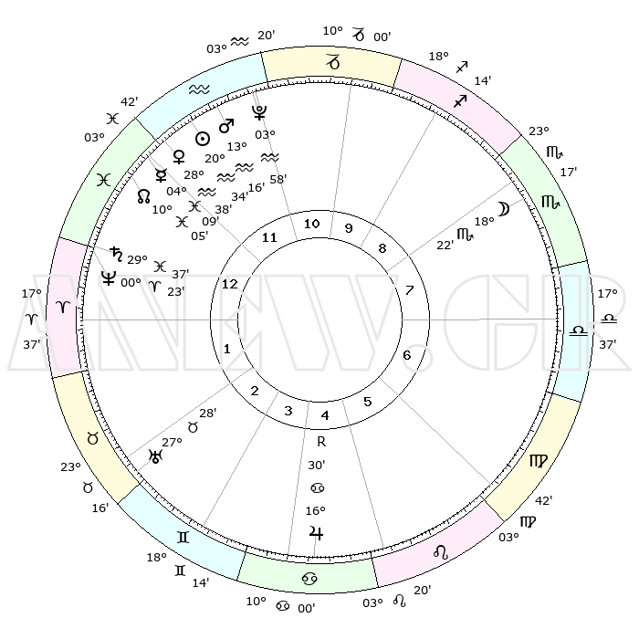 | | ΘΕΣΕΙΣ ΠΛΑΝΗΤΩΝ ΑΣΤΡΟΛΟΓΙΚΟΥ ΧΑΡΤΗ ΤΗΣ ΣΤΙΓΜΗΣ ΑΥΤΗΣ | | | | Πλανήτης | Ζώδιο | Μοίρες | Δεκαήμ. | Σε οίκο | Απόκλιση | | Ακμές των οίκων | | Ηλιος | Υδροχόος | 20°30' | Τρίτο | 12 | 14 S 39 | | 1ος | 06°27' | Ιχθείς | | Σελήνη | Σκορπιός | 17°31' | Δεύτερο | 8 | 21 S 44 | | 2ος | 21°12' | Κριός | | Ερμής | Ιχθείς | 04°01' | Πρώτο | 12 | 10 S 59 | | 3ος | 22°40' | Ταύρος | | Αφροδίτη | Υδροχόος | 28°32' | Τρίτο | 12 | 13 S 20 | | 4ος | 16°29' | Δίδυμοι | | Αρης | Υδροχόος | 13°13' | Δεύτερο | 12 | 17 S 52 | | 5ος | 08°11' | Καρκίνος | | Δίας | Καρκίνος | 16°31'R | Δεύτερο | 5 | 22 N 44 | | 6ος | 02°26' | Λέων | | Κρόνος | Ιχθείς | 29°36' | Τρίτο | 1 | 02 S 08 | | 7ος | 06°27' | Παρθένος | | Ουρανός | Ταύρος | 27°28' | Τρίτο | 3 | 19 N 24 | | 8ος | 21°12' | Ζυγός | | Ποσειδώνας | Κριός | 00°23' | Πρώτο | 1 | 01 S 03 | | 9ος | 22°40' | Σκορπιός | | Πλούτωνας | Υδροχόος | 03°58' | Πρώτο | 12 | 22 S 58 | | 10ος | 16°29' | Τοξότης | | Β. Δεσμός | Ιχθείς | 10°05' | Δεύτερο | 1 | 07 S 47 | | 11ος | 08°11' | Αιγόκερως | | Ωροσκόπος | Ιχθείς | 06°27' | Πρώτο | | | 12ος | 02°26' | Υδροχόος | | Μεσουράνημα | Τοξότης | 16°29' | Δεύτερο | | | |