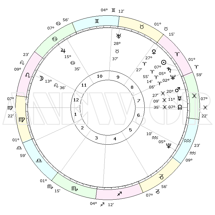 | | ΘΕΣΕΙΣ ΠΛΑΝΗΤΩΝ ΑΣΤΡΟΛΟΓΙΚΟΥ ΧΑΡΤΗ ΤΗΣ ΣΤΙΓΜΗΣ ΑΥΤΗΣ | | | | Πλανήτης | Ζώδιο | Μοίρες | Δεκαήμ. | Σε οίκο | Απόκλιση | | Ακμές των οίκων | | Ηλιος | Κριός | 07°51' | Πρώτο | 8 | 03 N 07 | | 1ος | 19°48' | Λέων | | Σελήνη | Λέων | 12°47' | Δεύτερο | 12 | 19 N 10 | | 2ος | 12°35' | Παρθένος | | Ερμής | Ιχθείς | 11°07' | Δεύτερο | 7 | 08 S 03 | | 3ος | 10°12' | Ζυγός | | Αφροδίτη | Κριός | 27°23' | Τρίτο | 9 | 10 N 00 | | 4ος | 12°51' | Σκορπιός | | Αρης | Ιχθείς | 20°25' | Τρίτο | 8 | 04 S 46 | | 5ος | 17°47' | Τοξότης | | Δίας | Καρκίνος | 15°34' | Δεύτερο | 11 | 22 N 53 | | 6ος | 20°42' | Αιγόκερως | | Κρόνος | Κριός | 05°14' | Πρώτο | 8 | 00 N 07 | | 7ος | 19°48' | Υδροχόος | | Ουρανός | Ταύρος | 28°37' | Τρίτο | 10 | 19 N 41 | | 8ος | 12°35' | Ιχθείς | | Ποσειδώνας | Κριός | 02°05' | Πρώτο | 8 | 00 S 22 | | 9ος | 10°12' | Κριός | | Πλούτωνας | Υδροχόος | 05°10' | Πρώτο | 6 | 22 S 48 | | 10ος | 12°51' | Ταύρος | | Β. Δεσμός | Ιχθείς | 07°35' | Πρώτο | 7 | 08 S 43 | | 11ος | 17°47' | Δίδυμοι | | Ωροσκόπος | Λέων | 19°48' | Δεύτερο | | | 12ος | 20°42' | Καρκίνος | | Μεσουράνημα | Ταύρος | 12°51' | Δεύτερο | | | |