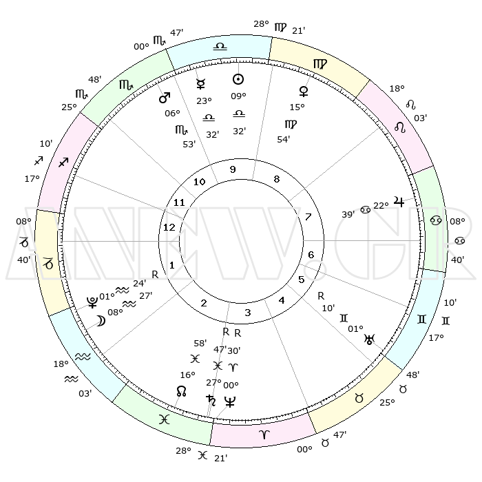 | ΘΕΣΕΙΣ ΠΛΑΝΗΤΩΝ ΑΣΤΡΟΛΟΓΙΚΟΥ ΧΑΡΤΗ ΤΗΣ ΣΤΙΓΜΗΣ ΑΥΤΗΣ | | Πλανήτης | Ζώδιο | Μοίρες | Δεκαήμ. | Σε οίκο | Απόκλιση | | Ακμές των οίκων | Ηλιος | Ζυγός | 09°28' | Πρώτο | 10 | 03 S 45 | | 1ος | 15°22' | Τοξότης | Σελήνη | Υδροχόος | 07°31' | Πρώτο | 2 | 21 S 42 | | 2ος | 19°08' | Αιγόκερως | Ερμής | Ζυγός | 23°25' | Τρίτο | 10 | 09 S 21 | | 3ος | 27°24' | Υδροχόος | Αφροδίτη | Παρθένος | 15°49' | Δεύτερο | 9 | 06 N 48 | | 4ος | 03°05' | Κριός | Αρης | Σκορπιός | 06°50' | Πρώτο | 11 | 13 S 53 | | 5ος | 01°50' | Ταύρος | Δίας | Καρκίνος | 22°38' | Τρίτο | 8 | 21 N 33 | | 6ος | 24°56' | Ταύρος | Κρόνος | Ιχθείς | 27°47'R | Τρίτο | 3 | 03 S 11 | | 7ος | 15°22' | Δίδυμοι | Ουρανός | Δίδυμοι | 01°11'R | Πρώτο | 6 | 20 N 11 | | 8ος | 19°08' | Καρκίνος | Ποσειδώνας | Κριός | 00°30'R | Πρώτο | 3 | 01 S 04 | | 9ος | 27°24' | Λέων | Πλούτωνας | Υδροχόος | 01°24'R | Πρώτο | 2 | 23 S 32 | | 10ος | 03°05' | Ζυγός | Β. Δεσμός | Ιχθείς | 16°58' | Δεύτερο | 3 | 05 S 09 | | 11ος | 01°50' | Σκορπιός | Ωροσκόπος | Τοξότης | 15°22' | Δεύτερο | | | 12ος | 24°56' | Σκορπιός | Μεσουράνημα | Ζυγός | 03°05' | Πρώτο | | | |
