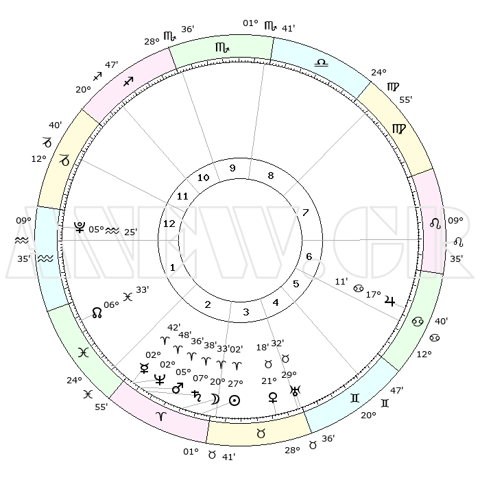 | | ΘΕΣΕΙΣ ΠΛΑΝΗΤΩΝ ΑΣΤΡΟΛΟΓΙΚΟΥ ΧΑΡΤΗ ΤΗΣ ΣΤΙΓΜΗΣ ΑΥΤΗΣ | | | | Πλανήτης | Ζώδιο | Μοίρες | Δεκαήμ. | Σε οίκο | Απόκλιση | | Ακμές των οίκων | | Ηλιος | Κριός | 26°54' | Τρίτο | 4 | 10 N 22 | | 1ος | 23°17' | Τοξότης | | Σελήνη | Κριός | 18°46' | Δεύτερο | 4 | 10 N 27 | | 2ος | 28°47' | Αιγόκερως | | Ερμής | Κριός | 02°32' | Πρώτο | 3 | 01 S 24 | | 3ος | 08°09' | Ιχθείς | | Αφροδίτη | Ταύρος | 21°09' | Τρίτο | 5 | 18 N 17 | | 4ος | 13°03' | Κριός | | Αρης | Κριός | 05°31' | Πρώτο | 3 | 01 N 18 | | 5ος | 10°28' | Ταύρος | | Δίας | Καρκίνος | 17°10' | Δεύτερο | 7 | 22 N 43 | | 6ος | 02°47' | Δίδυμοι | | Κρόνος | Κριός | 07°37' | Πρώτο | 3 | 01 N 03 | | 7ος | 23°17' | Δίδυμοι | | Ουρανός | Ταύρος | 29°31' | Τρίτο | 5 | 19 N 53 | | 8ος | 28°47' | Καρκίνος | | Ποσειδώνας | Κριός | 02°47' | Πρώτο | 3 | 00 S 06 | | 9ος | 08°09' | Παρθένος | | Πλούτωνας | Υδροχόος | 05°25' | Πρώτο | 2 | 22 S 47 | | 10ος | 13°03' | Ζυγός | | Β. Δεσμός | Ιχθείς | 06°34' | Πρώτο | 2 | 09 S 06 | | 11ος | 10°28' | Σκορπιός | | Ωροσκόπος | Τοξότης | 23°17' | Τρίτο | | | 12ος | 02°47' | Τοξότης | | Μεσουράνημα | Ζυγός | 13°03' | Δεύτερο | | | |