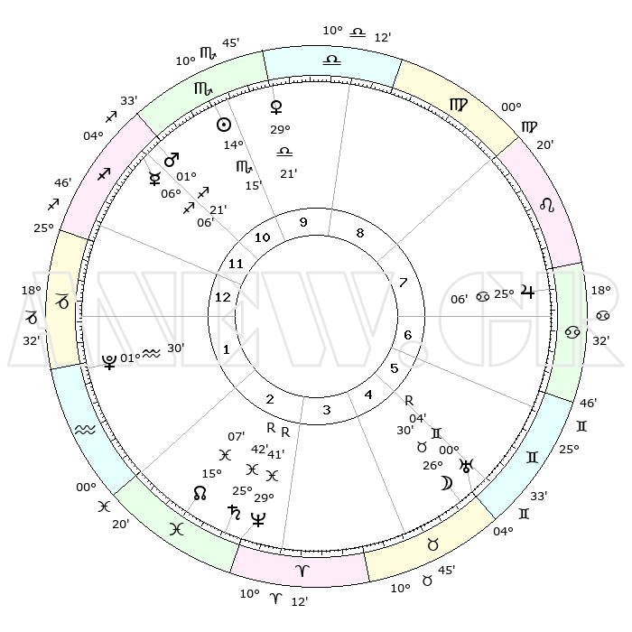 | | ΘΕΣΕΙΣ ΠΛΑΝΗΤΩΝ ΑΣΤΡΟΛΟΓΙΚΟΥ ΧΑΡΤΗ ΤΗΣ ΣΤΙΓΜΗΣ ΑΥΤΗΣ | | | | Πλανήτης | Ζώδιο | Μοίρες | Δεκαήμ. | Σε οίκο | Απόκλιση | | Ακμές των οίκων | | Ηλιος | Σκορπιός | 14°08' | Δεύτερο | 11 | 16 S 05 | | 1ος | 14°39' | Τοξότης | | Σελήνη | Ταύρος | 24°57' | Τρίτο | 6 | 23 N 34 | | 2ος | 18°16' | Αιγόκερως | | Ερμής | Τοξότης | 06°03' | Πρώτο | 12 | 24 S 00 | | 3ος | 26°25' | Υδροχόος | | Αφροδίτη | Ζυγός | 29°13' | Τρίτο | 10 | 09 S 53 | | 4ος | 02°10' | Κριός | | Αρης | Τοξότης | 01°17' | Πρώτο | 12 | 20 S 51 | | 5ος | 01°01' | Ταύρος | | Δίας | Καρκίνος | 25°06' | Τρίτο | 8 | 21 N 12 | | 6ος | 24°13' | Ταύρος | | Κρόνος | Ιχθείς | 25°42'R | Τρίτο | 3 | 03 S 57 | | 7ος | 14°39' | Δίδυμοι | | Ουρανός | Δίδυμοι | 00°04'R | Πρώτο | 6 | 19 N 57 | | 8ος | 18°16' | Καρκίνος | | Ποσειδώνας | Ιχθείς | 29°41'R | Τρίτο | 3 | 01 S 23 | | 9ος | 26°25' | Λέων | | Πλούτωνας | Υδροχόος | 01°30' | Πρώτο | 2 | 23 S 30 | | 10ος | 02°10' | Ζυγός | | Β. Δεσμός | Ιχθείς | 15°07' | Δεύτερο | 3 | 05 S 52 | | 11ος | 01°02' | Σκορπιός | | Ωροσκόπος | Τοξότης | 14°39' | Δεύτερο | | | 12ος | 24°13' | Σκορπιός | | Μεσουράνημα | Ζυγός | 02°10' | Πρώτο | | | |