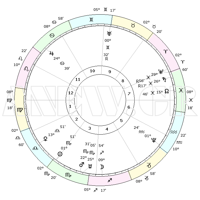 | | ΘΕΣΕΙΣ ΠΛΑΝΗΤΩΝ ΑΣΤΡΟΛΟΓΙΚΟΥ ΧΑΡΤΗ ΤΗΣ ΣΤΙΓΜΗΣ ΑΥΤΗΣ | | | | Πλανήτης | Ζώδιο | Μοίρες | Δεκαήμ. | Σε οίκο | Απόκλιση | | Ακμές των οίκων | | Ηλιος | Σκορπιός | 01°21' | Πρώτο | 8 | 11 S 56 | | 1ος | 15°30' | Υδροχόος | | Σελήνη | Τοξότης | 03°55' | Πρώτο | 10 | 25 S 50 | | 2ος | 01°13' | Κριός | | Ερμής | Σκορπιός | 24°29' | Τρίτο | 9 | 21 S 24 | | 3ος | 06°50' | Ταύρος | | Αφροδίτη | Ζυγός | 13°14' | Δεύτερο | 8 | 03 S 49 | | 4ος | 02°55' | Δίδυμοι | | Αρης | Σκορπιός | 22°10' | Τρίτο | 9 | 18 S 37 | | 5ος | 24°52' | Δίδυμοι | | Δίας | Καρκίνος | 24°37' | Τρίτο | 6 | 21 N 16 | | 6ος | 17°08' | Καρκίνος | | Κρόνος | Ιχθείς | 26°18'R | Τρίτο | 1 | 03 S 45 | | 7ος | 15°30' | Λέων | | Ουρανός | Δίδυμοι | 00°33'R | Πρώτο | 3 | 20 N 03 | | 8ος | 01°13' | Ζυγός | | Ποσειδώνας | Ιχθείς | 29°57'R | Τρίτο | 1 | 01 S 17 | | 9ος | 06°50' | Σκορπιός | | Πλούτωνας | Υδροχόος | 01°24' | Πρώτο | 12 | 23 S 32 | | 10ος | 02°55' | Τοξότης | | Β. Δεσμός | Ιχθείς | 15°48' | Δεύτερο | 1 | 05 S 36 | | 11ος | 24°52' | Τοξότης | | Ωροσκόπος | Υδροχόος | 15°30' | Δεύτερο | | | 12ος | 17°08' | Αιγόκερως | | Μεσουράνημα | Τοξότης | 02°55' | Πρώτο | | | |