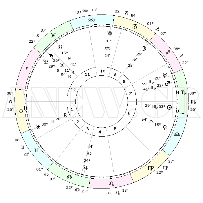 | | ΘΕΣΕΙΣ ΠΛΑΝΗΤΩΝ ΑΣΤΡΟΛΟΓΙΚΟΥ ΧΑΡΤΗ ΤΗΣ ΣΤΙΓΜΗΣ ΑΥΤΗΣ | | | | Πλανήτης | Ζώδιο | Μοίρες | Δεκαήμ. | Σε οίκο | Απόκλιση | | Ακμές των οίκων | | Ηλιος | Σκορπιός | 03°22' | Πρώτο | 8 | 12 S 38 | | 1ος | 29°19' | Υδροχόος | | Σελήνη | Τοξότης | 27°57' | Τρίτο | 10 | 28 S 27 | | 2ος | 14°47' | Κριός | | Ερμής | Σκορπιός | 26°51' | Τρίτο | 9 | 22 S 06 | | 3ος | 17°38' | Ταύρος | | Αφροδίτη | Ζυγός | 15°45' | Δεύτερο | 8 | 04 S 47 | | 4ος | 12°06' | Δίδυμοι | | Αρης | Σκορπιός | 23°36' | Τρίτο | 9 | 19 S 00 | | 5ος | 03°47' | Καρκίνος | | Δίας | Καρκίνος | 24°44' | Τρίτο | 5 | 21 N 15 | | 6ος | 27°17' | Καρκίνος | | Κρόνος | Ιχθείς | 26°12'R | Τρίτο | 1 | 03 S 47 | | 7ος | 29°19' | Λέων | | Ουρανός | Δίδυμοι | 00°29'R | Πρώτο | 3 | 20 N 02 | | 8ος | 14°47' | Ζυγός | | Ποσειδώνας | Ιχθείς | 29°54'R | Τρίτο | 1 | 01 S 18 | | 9ος | 17°38' | Σκορπιός | | Πλούτωνας | Υδροχόος | 01°24' | Πρώτο | 12 | 23 S 31 | | 10ος | 12°06' | Τοξότης | | Β. Δεσμός | Ιχθείς | 15°41' | Δεύτερο | 1 | 05 S 38 | | 11ος | 03°47' | Αιγόκερως | | Ωροσκόπος | Υδροχόος | 29°19' | Τρίτο | | | 12ος | 27°17' | Αιγόκερως | | Μεσουράνημα | Τοξότης | 12°06' | Δεύτερο | | | |