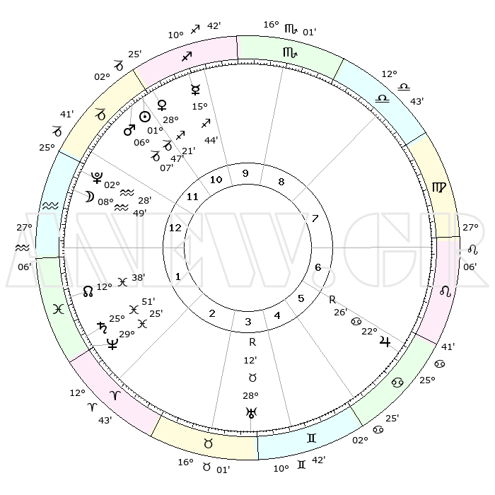 | | ΘΕΣΕΙΣ ΠΛΑΝΗΤΩΝ ΑΣΤΡΟΛΟΓΙΚΟΥ ΧΑΡΤΗ ΤΗΣ ΣΤΙΓΜΗΣ ΑΥΤΗΣ | | | | Πλανήτης | Ζώδιο | Μοίρες | Δεκαήμ. | Σε οίκο | Απόκλιση | | Ακμές των οίκων | | Ηλιος | Αιγόκερως | 01°42' | Πρώτο | 12 | 23 S 25 | | 1ος | 20°22' | Αιγόκερως | | Σελήνη | Υδροχόος | 07°48' | Πρώτο | 1 | 21 S 00 | | 2ος | 02°34' | Ιχθείς | | Ερμής | Τοξότης | 15°37' | Δεύτερο | 11 | 22 S 11 | | 3ος | 12°16' | Κριός | | Αφροδίτη | Τοξότης | 28°15' | Τρίτο | 12 | 23 S 35 | | 4ος | 12°29' | Ταύρος | | Αρης | Αιγόκερως | 06°03' | Πρώτο | 12 | 24 S 08 | | 5ος | 06°05' | Δίδυμοι | | Δίας | Καρκίνος | 22°27'R | Τρίτο | 7 | 21 N 47 | | 6ος | 27°18' | Δίδυμοι | | Κρόνος | Ιχθείς | 25°50' | Τρίτο | 2 | 03 S 45 | | 7ος | 20°22' | Καρκίνος | | Ουρανός | Ταύρος | 28°12'R | Τρίτο | 4 | 19 N 34 | | 8ος | 02°34' | Παρθένος | | Ποσειδώνας | Ιχθείς | 29°25' | Τρίτο | 2 | 01 S 27 | | 9ος | 12°16' | Ζυγός | | Πλούτωνας | Υδροχόος | 02°28' | Πρώτο | 1 | 23 S 16 | | 10ος | 12°29' | Σκορπιός | | Β. Δεσμός | Ιχθείς | 12°38' | Δεύτερο | 2 | 06 S 49 | | 11ος | 06°05' | Τοξότης | | Ωροσκόπος | Αιγόκερως | 20°22' | Τρίτο | | | 12ος | 27°18' | Τοξότης | | Μεσουράνημα | Σκορπιός | 12°29' | Δεύτερο | | | |