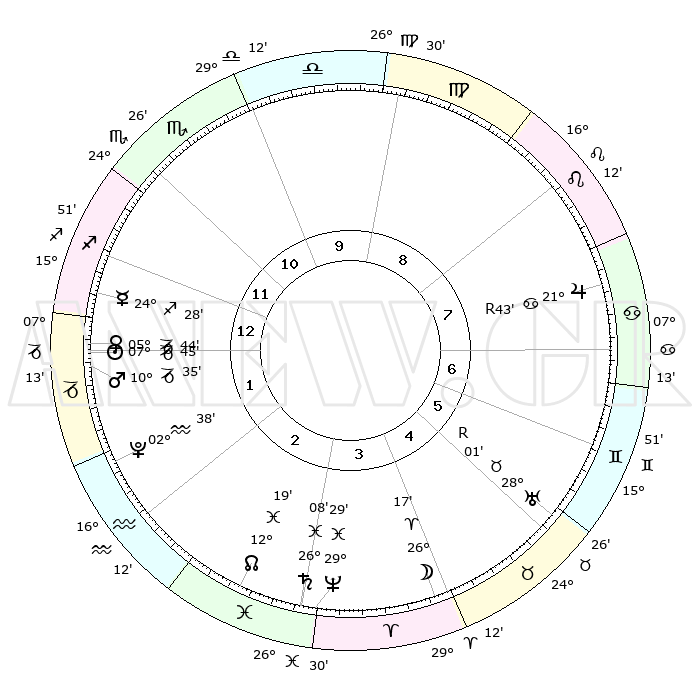 | | ΘΕΣΕΙΣ ΠΛΑΝΗΤΩΝ ΑΣΤΡΟΛΟΓΙΚΟΥ ΧΑΡΤΗ ΤΗΣ ΣΤΙΓΜΗΣ ΑΥΤΗΣ | | | | Πλανήτης | Ζώδιο | Μοίρες | Δεκαήμ. | Σε οίκο | Απόκλιση | | Ακμές των οίκων | | Ηλιος | Αιγόκερως | 07°41' | Πρώτο | 1 | 23 S 13 | | 1ος | 13°41' | Τοξότης | | Σελήνη | Κριός | 25°15' | Τρίτο | 4 | 13 N 03 | | 2ος | 17°06' | Αιγόκερως | | Ερμής | Τοξότης | 24°22' | Τρίτο | 1 | 23 S 34 | | 3ος | 25°06' | Υδροχόος | | Αφροδίτη | Αιγόκερως | 05°39' | Πρώτο | 1 | 23 S 43 | | 4ος | 00°54' | Κριός | | Αρης | Αιγόκερως | 10°32' | Δεύτερο | 1 | 23 S 53 | | 5ος | 29°56' | Κριός | | Δίας | Καρκίνος | 21°43'R | Τρίτο | 8 | 21 N 55 | | 6ος | 23°14' | Ταύρος | | Κρόνος | Ιχθείς | 26°08' | Τρίτο | 3 | 03 S 37 | | 7ος | 13°41' | Δίδυμοι | | Ουρανός | Ταύρος | 28°01'R | Τρίτο | 6 | 19 N 31 | | 8ος | 17°06' | Καρκίνος | | Ποσειδώνας | Ιχθείς | 29°29' | Τρίτο | 3 | 01 S 26 | | 9ος | 25°06' | Λέων | | Πλούτωνας | Υδροχόος | 02°38' | Πρώτο | 2 | 23 S 14 | | 10ος | 00°54' | Ζυγός | | Β. Δεσμός | Ιχθείς | 12°19' | Δεύτερο | 3 | 06 S 56 | | 11ος | 29°56' | Ζυγός | | Ωροσκόπος | Τοξότης | 13°41' | Δεύτερο | | | 12ος | 23°14' | Σκορπιός | | Μεσουράνημα | Ζυγός | 00°54' | Πρώτο | | | |