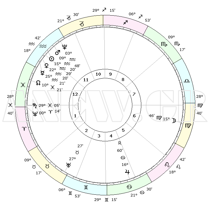 | | ΘΕΣΕΙΣ ΠΛΑΝΗΤΩΝ ΑΣΤΡΟΛΟΓΙΚΟΥ ΧΑΡΤΗ ΤΗΣ ΣΤΙΓΜΗΣ ΑΥΤΗΣ | | | | Πλανήτης | Ζώδιο | Μοίρες | Δεκαήμ. | Σε οίκο | Απόκλιση | | Ακμές των οίκων | | Ηλιος | Υδροχόος | 15°26' | Δεύτερο | 12 | 16 S 12 | | 1ος | 26°24' | Υδροχόος | | Σελήνη | Παρθένος | 15°01' | Δεύτερο | 7 | 05 N 24 | | 2ος | 12°03' | Κριός | | Ερμής | Υδροχόος | 25°15' | Τρίτο | 12 | 14 S 38 | | 3ος | 15°29' | Ταύρος | | Αφροδίτη | Υδροχόος | 22°16' | Τρίτο | 12 | 15 S 25 | | 4ος | 10°15' | Δίδυμοι | | Αρης | Υδροχόος | 09°17' | Πρώτο | 12 | 18 S 57 | | 5ος | 01°58' | Καρκίνος | | Δίας | Καρκίνος | 17°00'R | Δεύτερο | 5 | 22 N 40 | | 6ος | 25°10' | Καρκίνος | | Κρόνος | Ιχθείς | 29°05' | Τρίτο | 1 | 02 S 21 | | 7ος | 26°24' | Λέων | | Ουρανός | Ταύρος | 27°27' | Τρίτο | 3 | 19 N 24 | | 8ος | 12°03' | Ζυγός | | Ποσειδώνας | Κριός | 00°14' | Πρώτο | 1 | 01 S 07 | | 9ος | 15°29' | Σκορπιός | | Πλούτωνας | Υδροχόος | 03°48' | Πρώτο | 12 | 23 S 00 | | 10ος | 10°15' | Τοξότης | | Β. Δεσμός | Ιχθείς | 10°21' | Δεύτερο | 1 | 07 S 41 | | 11ος | 01°58' | Αιγόκερως | | Ωροσκόπος | Υδροχόος | 26°24' | Τρίτο | | | 12ος | 25°10' | Αιγόκερως | | Μεσουράνημα | Τοξότης | 10°15' | Δεύτερο | | | |
