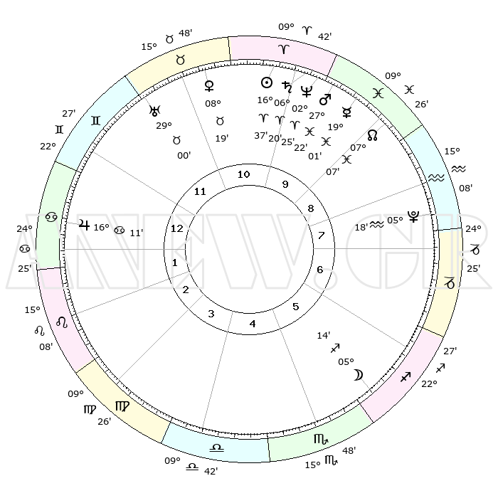 | | ΘΕΣΕΙΣ ΠΛΑΝΗΤΩΝ ΑΣΤΡΟΛΟΓΙΚΟΥ ΧΑΡΤΗ ΤΗΣ ΣΤΙΓΜΗΣ ΑΥΤΗΣ | | | | Πλανήτης | Ζώδιο | Μοίρες | Δεκαήμ. | Σε οίκο | Απόκλιση | | Ακμές των οίκων | | Ηλιος | Κριός | 16°34' | Δεύτερο | 10 | 06 N 31 | | 1ος | 05°56' | Καρκίνος | | Σελήνη | Τοξότης | 04°31' | Πρώτο | 6 | 26 S 06 | | 2ος | 26°28' | Καρκίνος | | Ερμής | Ιχθείς | 18°57' | Δεύτερο | 10 | 06 S 13 | | 3ος | 18°43' | Λέων | | Αφροδίτη | Ταύρος | 08°14' | Πρώτο | 11 | 14 N 03 | | 4ος | 15°60' | Παρθένος | | Αρης | Ιχθείς | 27°19' | Τρίτο | 10 | 02 S 00 | | 5ος | 20°48' | Ζυγός | | Δίας | Καρκίνος | 16°10' | Δεύτερο | 1 | 22 N 50 | | 6ος | 00°15' | Τοξότης | | Κρόνος | Κριός | 06°20' | Πρώτο | 10 | 00 N 33 | | 7ος | 05°56' | Αιγόκερως | | Ουρανός | Ταύρος | 29°00' | Τρίτο | 11 | 19 N 46 | | 8ος | 26°28' | Αιγόκερως | | Ποσειδώνας | Κριός | 02°25' | Πρώτο | 10 | 00 S 15 | | 9ος | 18°43' | Υδροχόος | | Πλούτωνας | Υδροχόος | 05°18' | Πρώτο | 8 | 22 S 47 | | 10ος | 15°60' | Ιχθείς | | Β. Δεσμός | Ιχθείς | 07°07' | Πρώτο | 9 | 08 S 54 | | 11ος | 20°48' | Κριός | | Ωροσκόπος | Καρκίνος | 05°56' | Πρώτο | | | 12ος | 00°15' | Δίδυμοι | | Μεσουράνημα | Ιχθείς | 15°60' | Δεύτερο | | | |