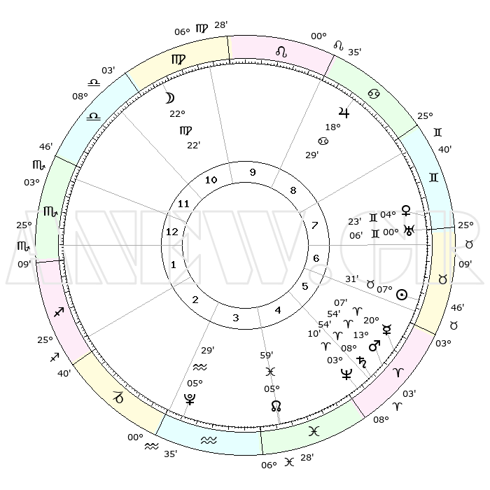 | | ΘΕΣΕΙΣ ΠΛΑΝΗΤΩΝ ΑΣΤΡΟΛΟΓΙΚΟΥ ΧΑΡΤΗ ΤΗΣ ΣΤΙΓΜΗΣ ΑΥΤΗΣ | | | | Πλανήτης | Ζώδιο | Μοίρες | Δεκαήμ. | Σε οίκο | Απόκλιση | | Ακμές των οίκων | | Ηλιος | Ταύρος | 07°27' | Πρώτο | 7 | 14 N 00 | | 1ος | 06°39' | Σκορπιός | | Σελήνη | Παρθένος | 21°33' | Τρίτο | 11 | 02 N 12 | | 2ος | 05°29' | Τοξότης | | Ερμής | Κριός | 20°00' | Τρίτο | 6 | 05 N 45 | | 3ος | 08°02' | Αιγόκερως | | Αφροδίτη | Δίδυμοι | 04°19' | Πρώτο | 7 | 21 N 44 | | 4ος | 12°42' | Υδροχόος | | Αρης | Κριός | 13°52' | Δεύτερο | 6 | 04 N 38 | | 5ος | 15°29' | Ιχθείς | | Δίας | Καρκίνος | 18°28' | Δεύτερο | 9 | 22 N 33 | | 6ος | 13°30' | Κριός | | Κρόνος | Κριός | 08°53' | Πρώτο | 5 | 01 N 32 | | 7ος | 06°39' | Ταύρος | | Ουρανός | Δίδυμοι | 00°06' | Πρώτο | 7 | 20 N 00 | | 8ος | 05°29' | Δίδυμοι | | Ποσειδώνας | Κριός | 03°09' | Πρώτο | 5 | 00 N 03 | | 9ος | 08°02' | Καρκίνος | | Πλούτωνας | Υδροχόος | 05°29' | Πρώτο | 3 | 22 S 48 | | 10ος | 12°42' | Λέων | | Β. Δεσμός | Ιχθείς | 05°59' | Πρώτο | 4 | 09 S 19 | | 11ος | 15°29' | Παρθένος | | Ωροσκόπος | Σκορπιός | 06°39' | Πρώτο | | | 12ος | 13°30' | Ζυγός | | Μεσουράνημα | Λέων | 12°42' | Δεύτερο | | | |