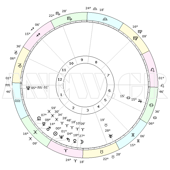 | | ΘΕΣΕΙΣ ΠΛΑΝΗΤΩΝ ΑΣΤΡΟΛΟΓΙΚΟΥ ΧΑΡΤΗ ΤΗΣ ΣΤΙΓΜΗΣ ΑΥΤΗΣ | | | | Πλανήτης | Ζώδιο | Μοίρες | Δεκαήμ. | Σε οίκο | Απόκλιση | | Ακμές των οίκων | | Ηλιος | Κριός | 00°23' | Πρώτο | 3 | 00 N 09 | | 1ος | 02°47' | Αιγόκερως | | Σελήνη | Κριός | 26°03' | Τρίτο | 4 | 13 N 39 | | 2ος | 10°38' | Υδροχόος | | Ερμής | Ιχθείς | 08°30' | Πρώτο | 2 | 07 S 31 | | 3ος | 20°48' | Ιχθείς | | Αφροδίτη | Κριός | 18°04' | Δεύτερο | 3 | 06 N 18 | | 4ος | 24°17' | Κριός | | Αρης | Ιχθείς | 14°30' | Δεύτερο | 2 | 07 S 06 | | 5ος | 20°10' | Ταύρος | | Δίας | Καρκίνος | 15°15' | Δεύτερο | 7 | 22 N 55 | | 6ος | 11°48' | Δίδυμοι | | Κρόνος | Κριός | 04°17' | Πρώτο | 3 | 00 S 15 | | 7ος | 02°47' | Καρκίνος | | Ουρανός | Ταύρος | 28°19' | Τρίτο | 5 | 19 N 37 | | 8ος | 10°38' | Λέων | | Ποσειδώνας | Κριός | 01°48' | Πρώτο | 3 | 00 S 29 | | 9ος | 20°48' | Παρθένος | | Πλούτωνας | Υδροχόος | 05°01' | Πρώτο | 1 | 22 S 48 | | 10ος | 24°17' | Ζυγός | | Β. Δεσμός | Ιχθείς | 07°59' | Πρώτο | 2 | 08 S 34 | | 11ος | 20°10' | Σκορπιός | | Ωροσκόπος | Αιγόκερως | 02°47' | Πρώτο | | | 12ος | 11°48' | Τοξότης | | Μεσουράνημα | Ζυγός | 24°17' | Τρίτο | | | |