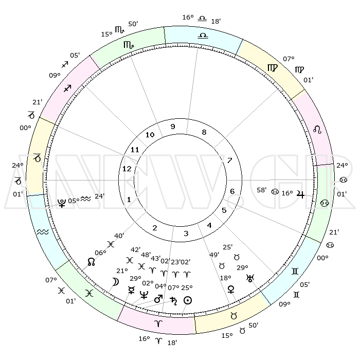 | | ΘΕΣΕΙΣ ΠΛΑΝΗΤΩΝ ΑΣΤΡΟΛΟΓΙΚΟΥ ΧΑΡΤΗ ΤΗΣ ΣΤΙΓΜΗΣ ΑΥΤΗΣ | | | | Πλανήτης | Ζώδιο | Μοίρες | Δεκαήμ. | Σε οίκο | Απόκλιση | | Ακμές των οίκων | | Ηλιος | Κριός | 24°59' | Τρίτο | 3 | 09 N 40 | | 1ος | 04°44' | Αιγόκερως | | Σελήνη | Ιχθείς | 20°59' | Τρίτο | 2 | 02 S 31 | | 2ος | 13°06' | Υδροχόος | | Ερμής | Ιχθείς | 29°44' | Τρίτο | 3 | 02 S 29 | | 3ος | 23°21' | Ιχθείς | | Αφροδίτη | Ταύρος | 18°45' | Δεύτερο | 4 | 17 N 34 | | 4ος | 26°29' | Κριός | | Αρης | Κριός | 03°60' | Πρώτο | 3 | 00 N 41 | | 5ος | 22°04' | Ταύρος | | Δίας | Καρκίνος | 16°58' | Δεύτερο | 7 | 22 N 44 | | 6ος | 13°36' | Δίδυμοι | | Κρόνος | Κριός | 07°23' | Πρώτο | 3 | 00 N 57 | | 7ος | 04°44' | Καρκίνος | | Ουρανός | Ταύρος | 29°25' | Τρίτο | 5 | 19 N 51 | | 8ος | 13°06' | Λέων | | Ποσειδώνας | Κριός | 02°43' | Πρώτο | 3 | 00 S 07 | | 9ος | 23°21' | Παρθένος | | Πλούτωνας | Υδροχόος | 05°24' | Πρώτο | 1 | 22 S 47 | | 10ος | 26°29' | Ζυγός | | Β. Δεσμός | Ιχθείς | 06°40' | Πρώτο | 2 | 09 S 04 | | 11ος | 22°04' | Σκορπιός | | Ωροσκόπος | Αιγόκερως | 04°44' | Πρώτο | | | 12ος | 13°36' | Τοξότης | | Μεσουράνημα | Ζυγός | 26°29' | Τρίτο | | | |