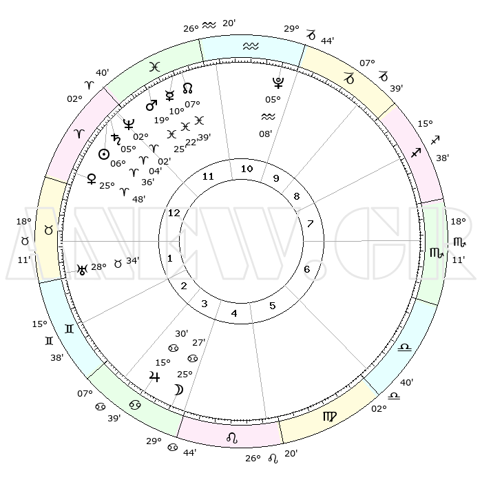 | | ΘΕΣΕΙΣ ΠΛΑΝΗΤΩΝ ΑΣΤΡΟΛΟΓΙΚΟΥ ΧΑΡΤΗ ΤΗΣ ΣΤΙΓΜΗΣ ΑΥΤΗΣ | | | | Πλανήτης | Ζώδιο | Μοίρες | Δεκαήμ. | Σε οίκο | Απόκλιση | | Ακμές των οίκων | | Ηλιος | Κριός | 06°31' | Πρώτο | 12 | 02 N 35 | | 1ος | 07°53' | Κριός | | Σελήνη | Καρκίνος | 24°25' | Τρίτο | 4 | 24 N 50 | | 2ος | 16°11' | Ταύρος | | Ερμής | Ιχθείς | 10°19' | Δεύτερο | 12 | 08 S 07 | | 3ος | 12°26' | Δίδυμοι | | Αφροδίτη | Κριός | 25°43' | Τρίτο | 1 | 09 N 21 | | 4ος | 04°26' | Καρκίνος | | Αρης | Ιχθείς | 19°21' | Δεύτερο | 12 | 05 S 11 | | 5ος | 27°08' | Καρκίνος | | Δίας | Καρκίνος | 15°30' | Δεύτερο | 4 | 22 N 54 | | 6ος | 25°48' | Λέων | | Κρόνος | Κριός | 05°04' | Πρώτο | 12 | 00 N 03 | | 7ος | 07°53' | Ζυγός | | Ουρανός | Ταύρος | 28°34' | Τρίτο | 2 | 19 N 40 | | 8ος | 16°11' | Σκορπιός | | Ποσειδώνας | Κριός | 02°02' | Πρώτο | 12 | 00 S 24 | | 9ος | 12°26' | Τοξότης | | Πλούτωνας | Υδροχόος | 05°08' | Πρώτο | 11 | 22 S 48 | | 10ος | 04°26' | Αιγόκερως | | Β. Δεσμός | Ιχθείς | 07°39' | Πρώτο | 12 | 08 S 42 | | 11ος | 27°08' | Αιγόκερως | | Ωροσκόπος | Κριός | 07°53' | Πρώτο | | | 12ος | 25°48' | Υδροχόος | | Μεσουράνημα | Αιγόκερως | 04°26' | Πρώτο | | | |