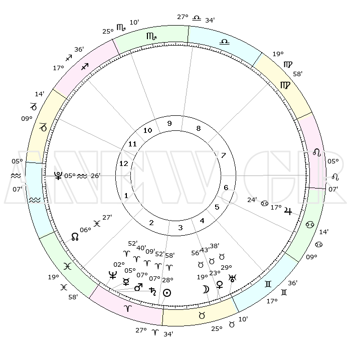 | | ΘΕΣΕΙΣ ΠΛΑΝΗΤΩΝ ΑΣΤΡΟΛΟΓΙΚΟΥ ΧΑΡΤΗ ΤΗΣ ΣΤΙΓΜΗΣ ΑΥΤΗΣ | | | | Πλανήτης | Ζώδιο | Μοίρες | Δεκαήμ. | Σε οίκο | Απόκλιση | | Ακμές των οίκων | | Ηλιος | Κριός | 28°54' | Τρίτο | 3 | 11 N 05 | | 1ος | 07°34' | Αιγόκερως | | Σελήνη | Ταύρος | 18°53' | Δεύτερο | 4 | 22 N 04 | | 2ος | 16°39' | Υδροχόος | | Ερμής | Κριός | 05°34' | Πρώτο | 3 | 00 S 13 | | 3ος | 26°57' | Ιχθείς | | Αφροδίτη | Ταύρος | 23°38' | Τρίτο | 4 | 19 N 01 | | 4ος | 29°35' | Κριός | | Αρης | Κριός | 07°05' | Πρώτο | 3 | 01 N 56 | | 5ος | 24°45' | Ταύρος | | Δίας | Καρκίνος | 17°23' | Δεύτερο | 7 | 22 N 41 | | 6ος | 16°10' | Δίδυμοι | | Κρόνος | Κριός | 07°51' | Πρώτο | 3 | 01 N 08 | | 7ος | 07°34' | Καρκίνος | | Ουρανός | Ταύρος | 29°38' | Τρίτο | 5 | 19 N 54 | | 8ος | 16°39' | Λέων | | Ποσειδώνας | Κριός | 02°52' | Πρώτο | 3 | 00 S 04 | | 9ος | 26°57' | Παρθένος | | Πλούτωνας | Υδροχόος | 05°26' | Πρώτο | 1 | 22 S 47 | | 10ος | 29°35' | Ζυγός | | Β. Δεσμός | Ιχθείς | 06°27' | Πρώτο | 2 | 09 S 08 | | 11ος | 24°45' | Σκορπιός | | Ωροσκόπος | Αιγόκερως | 07°34' | Πρώτο | | | 12ος | 16°10' | Τοξότης | | Μεσουράνημα | Ζυγός | 29°35' | Τρίτο | | | |