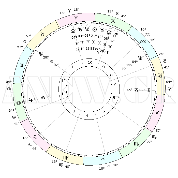 | | ΘΕΣΕΙΣ ΠΛΑΝΗΤΩΝ ΑΣΤΡΟΛΟΓΙΚΟΥ ΧΑΡΤΗ ΤΗΣ ΣΤΙΓΜΗΣ ΑΥΤΗΣ | | | | Πλανήτης | Ζώδιο | Μοίρες | Δεκαήμ. | Σε οίκο | Απόκλιση | | Ακμές των οίκων | | Ηλιος | Ιχθείς | 21°47' | Τρίτο | 10 | 03 S 15 | | 1ος | 14°09' | Δίδυμοι | | Σελήνη | Αιγόκερως | 02°17' | Πρώτο | 7 | 28 S 15 | | 2ος | 06°32' | Καρκίνος | | Ερμής | Ιχθείς | 12°09'R | Δεύτερο | 10 | 04 S 14 | | 3ος | 27°45' | Καρκίνος | | Αφροδίτη | Κριός | 07°22' | Πρώτο | 11 | 01 N 53 | | 4ος | 21°51' | Λέων | | Αρης | Ιχθείς | 07°42' | Πρώτο | 10 | 09 S 41 | | 5ος | 22°56' | Παρθένος | | Δίας | Καρκίνος | 15°05' | Δεύτερο | 2 | 22 N 56 | | 6ος | 02°59' | Σκορπιός | | Κρόνος | Κριός | 03°13' | Πρώτο | 11 | 00 S 40 | | 7ος | 14°09' | Τοξότης | | Ουρανός | Ταύρος | 28°02' | Τρίτο | 12 | 19 N 33 | | 8ος | 06°32' | Αιγόκερως | | Ποσειδώνας | Κριός | 01°28' | Πρώτο | 11 | 00 S 37 | | 9ος | 27°45' | Αιγόκερως | | Πλούτωνας | Υδροχόος | 04°49' | Πρώτο | 9 | 22 S 50 | | 10ος | 21°51' | Υδροχόος | | Β. Δεσμός | Ιχθείς | 08°27' | Πρώτο | 10 | 08 S 24 | | 11ος | 22°56' | Ιχθείς | | Ωροσκόπος | Δίδυμοι | 14°09' | Δεύτερο | | | 12ος | 02°59' | Ταύρος | | Μεσουράνημα | Υδροχόος | 21°51' | Τρίτο | | | |