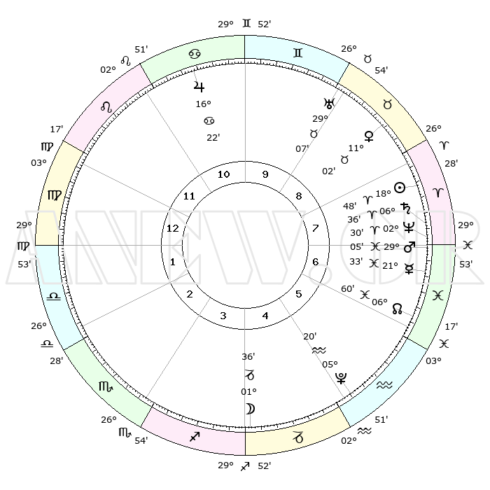 | | ΘΕΣΕΙΣ ΠΛΑΝΗΤΩΝ ΑΣΤΡΟΛΟΓΙΚΟΥ ΧΑΡΤΗ ΤΗΣ ΣΤΙΓΜΗΣ ΑΥΤΗΣ | | | | Πλανήτης | Ζώδιο | Μοίρες | Δεκαήμ. | Σε οίκο | Απόκλιση | | Ακμές των οίκων | | Ηλιος | Κριός | 18°45' | Δεύτερο | 8 | 07 N 21 | | 1ος | 13°19' | Παρθένος | | Σελήνη | Αιγόκερως | 00°56' | Πρώτο | 4 | 28 S 12 | | 2ος | 08°31' | Ζυγός | | Ερμής | Ιχθείς | 21°29' | Τρίτο | 7 | 05 S 25 | | 3ος | 08°10' | Σκορπιός | | Αφροδίτη | Ταύρος | 10°58' | Δεύτερο | 9 | 15 N 00 | | 4ος | 11°07' | Τοξότης | | Αρης | Ιχθείς | 29°03' | Τρίτο | 7 | 01 S 19 | | 5ος | 14°33' | Αιγόκερως | | Δίας | Καρκίνος | 16°21' | Δεύτερο | 11 | 22 N 48 | | 6ος | 15°40' | Υδροχόος | | Κρόνος | Κριός | 06°36' | Πρώτο | 7 | 00 N 39 | | 7ος | 13°19' | Ιχθείς | | Ουρανός | Ταύρος | 29°07' | Τρίτο | 9 | 19 N 47 | | 8ος | 08°31' | Κριός | | Ποσειδώνας | Κριός | 02°29' | Πρώτο | 7 | 00 S 13 | | 9ος | 08°10' | Ταύρος | | Πλούτωνας | Υδροχόος | 05°20' | Πρώτο | 5 | 22 S 47 | | 10ος | 11°07' | Δίδυμοι | | Β. Δεσμός | Ιχθείς | 07°00' | Πρώτο | 6 | 08 S 56 | | 11ος | 14°33' | Καρκίνος | | Ωροσκόπος | Παρθένος | 13°19' | Δεύτερο | | | 12ος | 15°40' | Λέων | | Μεσουράνημα | Δίδυμοι | 11°07' | Δεύτερο | | | |
