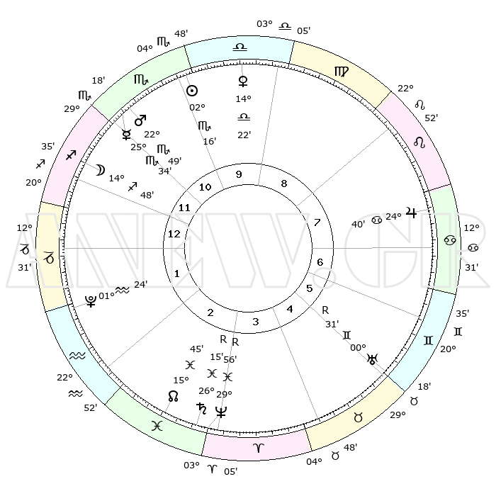 | | ΘΕΣΕΙΣ ΠΛΑΝΗΤΩΝ ΑΣΤΡΟΛΟΓΙΚΟΥ ΧΑΡΤΗ ΤΗΣ ΣΤΙΓΜΗΣ ΑΥΤΗΣ | | | | Πλανήτης | Ζώδιο | Μοίρες | Δεκαήμ. | Σε οίκο | Απόκλιση | | Ακμές των οίκων | | Ηλιος | Σκορπιός | 01°48' | Πρώτο | 3 | 12 S 06 | | 1ος | 26°21' | Λέων | | Σελήνη | Τοξότης | 09°25' | Πρώτο | 4 | 26 S 53 | | 2ος | 19°49' | Παρθένος | | Ερμής | Σκορπιός | 25°02' | Τρίτο | 4 | 21 S 34 | | 3ος | 18°09' | Ζυγός | | Αφροδίτη | Ζυγός | 13°48' | Δεύτερο | 2 | 04 S 02 | | 4ος | 21°00' | Σκορπιός | | Αρης | Σκορπιός | 22°30' | Τρίτο | 4 | 18 S 42 | | 5ος | 25°27' | Τοξότης | | Δίας | Καρκίνος | 24°39' | Τρίτο | 11 | 21 N 15 | | 6ος | 27°43' | Αιγόκερως | | Κρόνος | Ιχθείς | 26°17'R | Τρίτο | 8 | 03 S 45 | | 7ος | 26°21' | Υδροχόος | | Ουρανός | Δίδυμοι | 00°32'R | Πρώτο | 10 | 20 N 03 | | 8ος | 19°49' | Ιχθείς | | Ποσειδώνας | Ιχθείς | 29°56'R | Τρίτο | 8 | 01 S 17 | | 9ος | 18°09' | Κριός | | Πλούτωνας | Υδροχόος | 01°24' | Πρώτο | 6 | 23 S 32 | | 10ος | 21°00' | Ταύρος | | Β. Δεσμός | Ιχθείς | 15°46' | Δεύτερο | 7 | 05 S 37 | | 11ος | 25°27' | Δίδυμοι | | Ωροσκόπος | Λέων | 26°21' | Τρίτο | | | 12ος | 27°43' | Καρκίνος | | Μεσουράνημα | Ταύρος | 21°00' | Τρίτο | | | |
