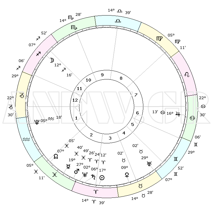 | | ΘΕΣΕΙΣ ΠΛΑΝΗΤΩΝ ΑΣΤΡΟΛΟΓΙΚΟΥ ΧΑΡΤΗ ΤΗΣ ΣΤΙΓΜΗΣ ΑΥΤΗΣ | | | | Πλανήτης | Ζώδιο | Μοίρες | Δεκαήμ. | Σε οίκο | Απόκλιση | | Ακμές των οίκων | | Ηλιος | Κριός | 17°08' | Δεύτερο | 4 | 06 N 44 | | 1ος | 25°52' | Τοξότης | | Σελήνη | Τοξότης | 11°23' | Δεύτερο | 12 | 27 S 15 | | 2ος | 02°00' | Υδροχόος | | Ερμής | Ιχθείς | 19°35' | Δεύτερο | 3 | 06 S 02 | | 3ος | 11°39' | Ιχθείς | | Αφροδίτη | Ταύρος | 08°57' | Πρώτο | 4 | 14 N 18 | | 4ος | 16°12' | Κριός | | Αρης | Ιχθείς | 27°46' | Τρίτο | 3 | 01 S 50 | | 5ος | 13°11' | Ταύρος | | Δίας | Καρκίνος | 16°13' | Δεύτερο | 7 | 22 N 49 | | 6ος | 05°17' | Δίδυμοι | | Κρόνος | Κριός | 06°24' | Πρώτο | 3 | 00 N 35 | | 7ος | 25°52' | Δίδυμοι | | Ουρανός | Ταύρος | 29°02' | Τρίτο | 5 | 19 N 46 | | 8ος | 02°00' | Λέων | | Ποσειδώνας | Κριός | 02°26' | Πρώτο | 3 | 00 S 14 | | 9ος | 11°39' | Παρθένος | | Πλούτωνας | Υδροχόος | 05°18' | Πρώτο | 2 | 22 S 47 | | 10ος | 16°12' | Ζυγός | | Β. Δεσμός | Ιχθείς | 07°05' | Πρώτο | 2 | 08 S 54 | | 11ος | 13°11' | Σκορπιός | | Ωροσκόπος | Τοξότης | 25°52' | Τρίτο | | | 12ος | 05°17' | Τοξότης | | Μεσουράνημα | Ζυγός | 16°12' | Δεύτερο | | | |