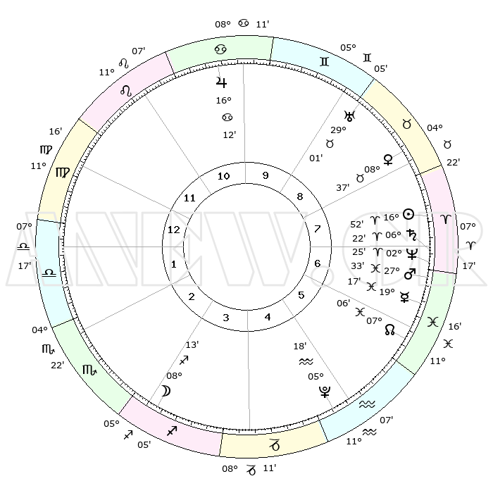 | | ΘΕΣΕΙΣ ΠΛΑΝΗΤΩΝ ΑΣΤΡΟΛΟΓΙΚΟΥ ΧΑΡΤΗ ΤΗΣ ΣΤΙΓΜΗΣ ΑΥΤΗΣ | | | | Πλανήτης | Ζώδιο | Μοίρες | Δεκαήμ. | Σε οίκο | Απόκλιση | | Ακμές των οίκων | | Ηλιος | Κριός | 16°48' | Δεύτερο | 8 | 06 N 36 | | 1ος | 18°51' | Παρθένος | | Σελήνη | Τοξότης | 07°28' | Πρώτο | 3 | 26 S 39 | | 2ος | 14°33' | Ζυγός | | Ερμής | Ιχθείς | 19°13' | Δεύτερο | 7 | 06 S 08 | | 3ος | 14°31' | Σκορπιός | | Αφροδίτη | Ταύρος | 08°33' | Πρώτο | 8 | 14 N 09 | | 4ος | 17°27' | Τοξότης | | Αρης | Ιχθείς | 27°30' | Τρίτο | 7 | 01 S 56 | | 5ος | 20°40' | Αιγόκερως | | Δίας | Καρκίνος | 16°11' | Δεύτερο | 10 | 22 N 49 | | 6ος | 21°32' | Υδροχόος | | Κρόνος | Κριός | 06°21' | Πρώτο | 7 | 00 N 34 | | 7ος | 18°51' | Ιχθείς | | Ουρανός | Ταύρος | 29°01' | Τρίτο | 9 | 19 N 46 | | 8ος | 14°33' | Κριός | | Ποσειδώνας | Κριός | 02°25' | Πρώτο | 7 | 00 S 14 | | 9ος | 14°31' | Ταύρος | | Πλούτωνας | Υδροχόος | 05°18' | Πρώτο | 5 | 22 S 47 | | 10ος | 17°27' | Δίδυμοι | | Β. Δεσμός | Ιχθείς | 07°06' | Πρώτο | 6 | 08 S 54 | | 11ος | 20°40' | Καρκίνος | | Ωροσκόπος | Παρθένος | 18°51' | Δεύτερο | | | 12ος | 21°32' | Λέων | | Μεσουράνημα | Δίδυμοι | 17°27' | Δεύτερο | | | |