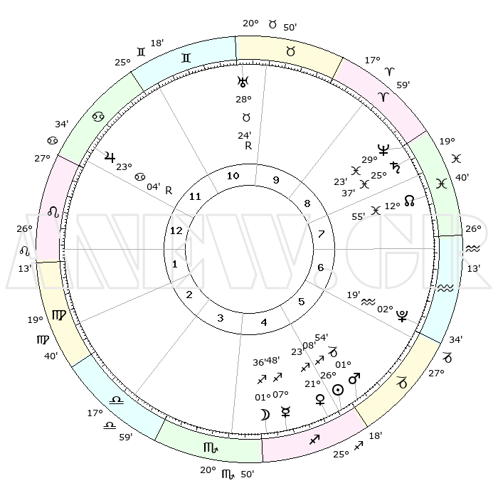 | | ΘΕΣΕΙΣ ΠΛΑΝΗΤΩΝ ΑΣΤΡΟΛΟΓΙΚΟΥ ΧΑΡΤΗ ΤΗΣ ΣΤΙΓΜΗΣ ΑΥΤΗΣ | | | | Πλανήτης | Ζώδιο | Μοίρες | Δεκαήμ. | Σε οίκο | Απόκλιση | | Ακμές των οίκων | | Ηλιος | Τοξότης | 26°03' | Τρίτο | 5 | 23 S 22 | | 1ος | 02°15' | Λέων | | Σελήνη | Τοξότης | 00°37' | Πρώτο | 5 | 25 S 03 | | 2ος | 23°27' | Λέων | | Ερμής | Τοξότης | 07°41' | Πρώτο | 5 | 20 S 25 | | 3ος | 18°48' | Παρθένος | | Αφροδίτη | Τοξότης | 21°17' | Τρίτο | 5 | 23 S 06 | | 4ος | 20°07' | Ζυγός | | Αρης | Αιγόκερως | 01°51' | Πρώτο | 6 | 24 S 13 | | 5ος | 26°06' | Σκορπιός | | Δίας | Καρκίνος | 23°05'R | Τρίτο | 12 | 21 N 40 | | 6ος | 01°26' | Αιγόκερως | | Κρόνος | Ιχθείς | 25°37' | Τρίτο | 9 | 03 S 52 | | 7ος | 02°15' | Υδροχόος | | Ουρανός | Ταύρος | 28°24'R | Τρίτο | 11 | 19 N 36 | | 8ος | 23°27' | Υδροχόος | | Ποσειδώνας | Ιχθείς | 29°23' | Τρίτο | 9 | 01 S 28 | | 9ος | 18°48' | Ιχθείς | | Πλούτωνας | Υδροχόος | 02°19' | Πρώτο | 7 | 23 S 18 | | 10ος | 20°07' | Κριός | | Β. Δεσμός | Ιχθείς | 12°55' | Δεύτερο | 8 | 06 S 42 | | 11ος | 26°06' | Ταύρος | | Ωροσκόπος | Λέων | 02°15' | Πρώτο | | | 12ος | 01°26' | Καρκίνος | | Μεσουράνημα | Κριός | 20°07' | Τρίτο | | | |