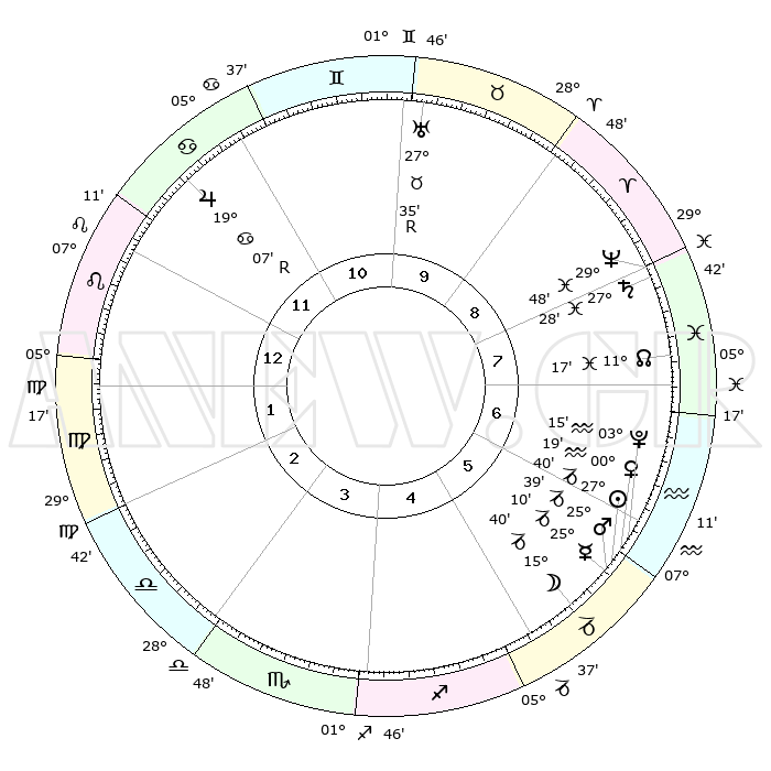 | | ΘΕΣΕΙΣ ΠΛΑΝΗΤΩΝ ΑΣΤΡΟΛΟΓΙΚΟΥ ΧΑΡΤΗ ΤΗΣ ΣΤΙΓΜΗΣ ΑΥΤΗΣ | | | | Πλανήτης | Ζώδιο | Μοίρες | Δεκαήμ. | Σε οίκο | Απόκλιση | | Ακμές των οίκων | | Ηλιος | Αιγόκερως | 27°36' | Τρίτο | 6 | 20 S 38 | | 1ος | 15°56' | Λέων | | Σελήνη | Αιγόκερως | 14°50' | Δεύτερο | 5 | 26 S 47 | | 2ος | 08°19' | Παρθένος | | Ερμής | Αιγόκερως | 25°04' | Τρίτο | 6 | 23 S 00 | | 3ος | 05°29' | Ζυγός | | Αφροδίτη | Υδροχόος | 00°14' | Πρώτο | 6 | 21 S 08 | | 4ος | 07°57' | Σκορπιός | | Αρης | Αιγόκερως | 25°36' | Τρίτο | 6 | 21 S 59 | | 5ος | 13°10' | Τοξότης | | Δίας | Καρκίνος | 19°07'R | Δεύτερο | 12 | 22 N 21 | | 6ος | 16°32' | Αιγόκερως | | Κρόνος | Ιχθείς | 27°28' | Τρίτο | 8 | 03 S 02 | | 7ος | 15°56' | Υδροχόος | | Ουρανός | Ταύρος | 27°35'R | Τρίτο | 10 | 19 N 26 | | 8ος | 08°19' | Ιχθείς | | Ποσειδώνας | Ιχθείς | 29°48' | Τρίτο | 8 | 01 S 18 | | 9ος | 05°29' | Κριός | | Πλούτωνας | Υδροχόος | 03°15' | Πρώτο | 6 | 23 S 07 | | 10ος | 07°57' | Ταύρος | | Β. Δεσμός | Ιχθείς | 11°17' | Δεύτερο | 8 | 07 S 20 | | 11ος | 13°10' | Δίδυμοι | | Ωροσκόπος | Λέων | 15°56' | Δεύτερο | | | 12ος | 16°32' | Καρκίνος | | Μεσουράνημα | Ταύρος | 07°57' | Πρώτο | | | |