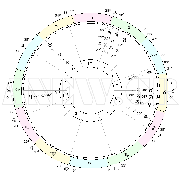 | | ΘΕΣΕΙΣ ΠΛΑΝΗΤΩΝ ΑΣΤΡΟΛΟΓΙΚΟΥ ΧΑΡΤΗ ΤΗΣ ΣΤΙΓΜΗΣ ΑΥΤΗΣ | | | | Πλανήτης | Ζώδιο | Μοίρες | Δεκαήμ. | Σε οίκο | Απόκλιση | | Ακμές των οίκων | | Ηλιος | Αιγόκερως | 05°03' | Πρώτο | 7 | 23 S 20 | | 1ος | 21°16' | Δίδυμοι | | Σελήνη | Ιχθείς | 20°03' | Τρίτο | 10 | 03 S 14 | | 2ος | 12°47' | Καρκίνος | | Ερμής | Τοξότης | 20°30' | Τρίτο | 6 | 23 S 02 | | 3ος | 04°09' | Λέων | | Αφροδίτη | Αιγόκερως | 02°25' | Πρώτο | 7 | 23 S 43 | | 4ος | 29°10' | Λέων | | Αρης | Αιγόκερως | 08°34' | Πρώτο | 7 | 24 S 01 | | 5ος | 01°35' | Ζυγός | | Δίας | Καρκίνος | 22°03'R | Τρίτο | 2 | 21 N 51 | | 6ος | 11°53' | Σκορπιός | | Κρόνος | Ιχθείς | 25°60' | Τρίτο | 10 | 03 S 41 | | 7ος | 21°16' | Τοξότης | | Ουρανός | Ταύρος | 28°06'R | Τρίτο | 12 | 19 N 32 | | 8ος | 12°47' | Αιγόκερως | | Ποσειδώνας | Ιχθείς | 29°27' | Τρίτο | 10 | 01 S 27 | | 9ος | 04°09' | Υδροχόος | | Πλούτωνας | Υδροχόος | 02°34' | Πρώτο | 8 | 23 S 15 | | 10ος | 29°10' | Υδροχόος | | Β. Δεσμός | Ιχθείς | 12°27' | Δεύτερο | 10 | 06 S 53 | | 11ος | 01°35' | Κριός | | Ωροσκόπος | Δίδυμοι | 21°16' | Τρίτο | | | 12ος | 11°53' | Ταύρος | | Μεσουράνημα | Υδροχόος | 29°10' | Τρίτο | | | |