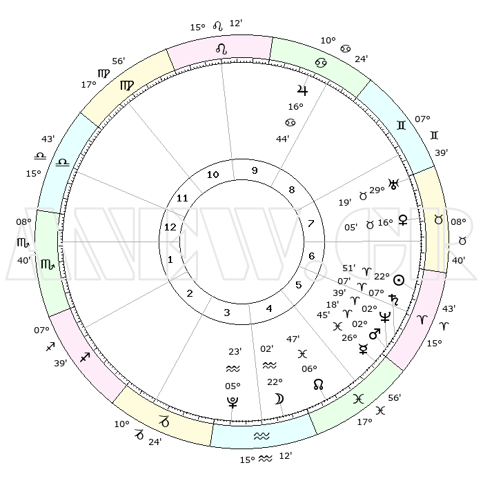 | | ΘΕΣΕΙΣ ΠΛΑΝΗΤΩΝ ΑΣΤΡΟΛΟΓΙΚΟΥ ΧΑΡΤΗ ΤΗΣ ΣΤΙΓΜΗΣ ΑΥΤΗΣ | | | | Πλανήτης | Ζώδιο | Μοίρες | Δεκαήμ. | Σε οίκο | Απόκλιση | | Ακμές των οίκων | | Ηλιος | Κριός | 22°47' | Τρίτο | 7 | 08 N 51 | | 1ος | 17°00' | Ζυγός | | Σελήνη | Υδροχόος | 21°05' | Τρίτο | 4 | 15 S 54 | | 2ος | 14°40' | Σκορπιός | | Ερμής | Ιχθείς | 26°39' | Τρίτο | 6 | 03 S 38 | | 3ος | 15°49' | Τοξότης | | Αφροδίτη | Ταύρος | 15°60' | Δεύτερο | 8 | 16 N 41 | | 4ος | 19°15' | Αιγόκερως | | Αρης | Κριός | 02°14' | Πρώτο | 6 | 00 S 01 | | 5ος | 22°12' | Υδροχόος | | Δίας | Καρκίνος | 16°44' | Δεύτερο | 9 | 22 N 46 | | 6ος | 21°51' | Ιχθείς | | Κρόνος | Κριός | 07°06' | Πρώτο | 6 | 00 N 51 | | 7ος | 17°00' | Κριός | | Ουρανός | Ταύρος | 29°18' | Τρίτο | 8 | 19 N 50 | | 8ος | 14°40' | Ταύρος | | Ποσειδώνας | Κριός | 02°38' | Πρώτο | 6 | 00 S 09 | | 9ος | 15°49' | Δίδυμοι | | Πλούτωνας | Υδροχόος | 05°23' | Πρώτο | 4 | 22 S 47 | | 10ος | 19°15' | Καρκίνος | | Β. Δεσμός | Ιχθείς | 06°47' | Πρώτο | 5 | 09 S 01 | | 11ος | 22°12' | Λέων | | Ωροσκόπος | Ζυγός | 17°00' | Δεύτερο | | | 12ος | 21°51' | Παρθένος | | Μεσουράνημα | Καρκίνος | 19°15' | Δεύτερο | | | |