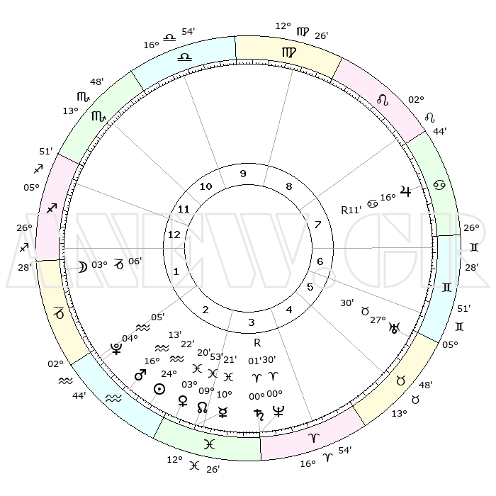 | | ΘΕΣΕΙΣ ΠΛΑΝΗΤΩΝ ΑΣΤΡΟΛΟΓΙΚΟΥ ΧΑΡΤΗ ΤΗΣ ΣΤΙΓΜΗΣ ΑΥΤΗΣ | | | | Πλανήτης | Ζώδιο | Μοίρες | Δεκαήμ. | Σε οίκο | Απόκλιση | | Ακμές των οίκων | | Ηλιος | Υδροχόος | 24°19' | Τρίτο | 3 | 13 S 25 | | 1ος | 09°15' | Τοξότης | | Σελήνη | Αιγόκερως | 02°26' | Πρώτο | 1 | 28 S 14 | | 2ος | 11°51' | Αιγόκερως | | Ερμής | Ιχθείς | 10°16' | Δεύτερο | 3 | 08 S 03 | | 3ος | 19°07' | Υδροχόος | | Αφροδίτη | Ιχθείς | 03°16' | Πρώτο | 3 | 11 S 40 | | 4ος | 25°08' | Ιχθείς | | Αρης | Υδροχόος | 16°10' | Δεύτερο | 2 | 17 S 01 | | 5ος | 24°51' | Κριός | | Δίας | Καρκίνος | 16°11'R | Δεύτερο | 8 | 22 N 46 | | 6ος | 18°42' | Ταύρος | | Κρόνος | Κριός | 00°00'R | Πρώτο | 4 | 01 S 58 | | 7ος | 09°15' | Δίδυμοι | | Ουρανός | Ταύρος | 27°30' | Τρίτο | 6 | 19 N 25 | | 8ος | 11°51' | Καρκίνος | | Ποσειδώνας | Κριός | 00°30' | Πρώτο | 4 | 01 S 00 | | 9ος | 19°07' | Λέων | | Πλούτωνας | Υδροχόος | 04°05' | Πρώτο | 2 | 22 S 57 | | 10ος | 25°08' | Παρθένος | | Β. Δεσμός | Ιχθείς | 09°53' | Πρώτο | 3 | 07 S 51 | | 11ος | 24°51' | Ζυγός | | Ωροσκόπος | Τοξότης | 09°15' | Πρώτο | | | 12ος | 18°42' | Σκορπιός | | Μεσουράνημα | Παρθένος | 25°08' | Τρίτο | | | |