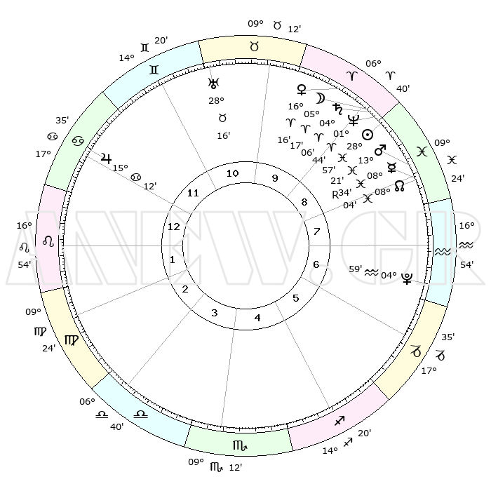 | | ΘΕΣΕΙΣ ΠΛΑΝΗΤΩΝ ΑΣΤΡΟΛΟΓΙΚΟΥ ΧΑΡΤΗ ΤΗΣ ΣΤΙΓΜΗΣ ΑΥΤΗΣ | | | | Πλανήτης | Ζώδιο | Μοίρες | Δεκαήμ. | Σε οίκο | Απόκλιση | | Ακμές των οίκων | | Ηλιος | Ιχθείς | 28°53' | Τρίτο | 9 | 00 S 27 | | 1ος | 29°22' | Καρκίνος | | Σελήνη | Κριός | 04°26' | Πρώτο | 9 | 03 N 50 | | 2ος | 20°21' | Λέων | | Ερμής | Ιχθείς | 08°35'R | Πρώτο | 8 | 07 S 08 | | 3ος | 15°19' | Παρθένος | | Αφροδίτη | Κριός | 16°12' | Δεύτερο | 9 | 05 N 32 | | 4ος | 16°16' | Ζυγός | | Αρης | Ιχθείς | 13°18' | Δεύτερο | 8 | 07 S 33 | | 5ος | 22°20' | Σκορπιός | | Δίας | Καρκίνος | 15°12' | Δεύτερο | 12 | 22 N 56 | | 6ος | 28°09' | Τοξότης | | Κρόνος | Κριός | 04°06' | Πρώτο | 9 | 00 S 19 | | 7ος | 29°22' | Αιγόκερως | | Ουρανός | Ταύρος | 28°16' | Τρίτο | 11 | 19 N 36 | | 8ος | 20°21' | Υδροχόος | | Ποσειδώνας | Κριός | 01°44' | Πρώτο | 9 | 00 S 30 | | 9ος | 15°19' | Ιχθείς | | Πλούτωνας | Υδροχόος | 04°59' | Πρώτο | 7 | 22 S 49 | | 10ος | 16°16' | Κριός | | Β. Δεσμός | Ιχθείς | 08°04' | Πρώτο | 8 | 08 S 33 | | 11ος | 22°20' | Ταύρος | | Ωροσκόπος | Καρκίνος | 29°22' | Τρίτο | | | 12ος | 28°09' | Δίδυμοι | | Μεσουράνημα | Κριός | 16°16' | Δεύτερο | | | |