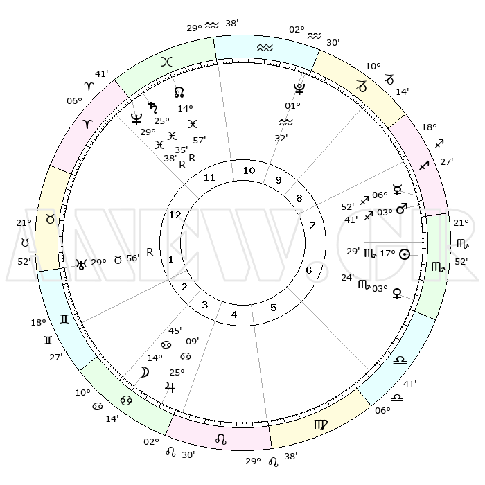 | | ΘΕΣΕΙΣ ΠΛΑΝΗΤΩΝ ΑΣΤΡΟΛΟΓΙΚΟΥ ΧΑΡΤΗ ΤΗΣ ΣΤΙΓΜΗΣ ΑΥΤΗΣ | | | | Πλανήτης | Ζώδιο | Μοίρες | Δεκαήμ. | Σε οίκο | Απόκλιση | | Ακμές των οίκων | | Ηλιος | Σκορπιός | 17°21' | Δεύτερο | 8 | 17 S 00 | | 1ος | 09°17' | Ιχθείς | | Σελήνη | Καρκίνος | 12°51' | Δεύτερο | 5 | 27 N 20 | | 2ος | 23°40' | Κριός | | Ερμής | Τοξότης | 06°51' | Πρώτο | 9 | 23 S 49 | | 3ος | 24°36' | Ταύρος | | Αφροδίτη | Σκορπιός | 03°14' | Πρώτο | 8 | 11 S 20 | | 4ος | 18°10' | Δίδυμοι | | Αρης | Τοξότης | 03°35' | Πρώτο | 9 | 21 S 20 | | 5ος | 09°53' | Καρκίνος | | Δίας | Καρκίνος | 25°09' | Τρίτο | 5 | 21 N 12 | | 6ος | 04°29' | Λέων | | Κρόνος | Ιχθείς | 25°35'R | Τρίτο | 1 | 04 S 00 | | 7ος | 09°17' | Παρθένος | | Ουρανός | Ταύρος | 29°56'R | Τρίτο | 3 | 19 N 56 | | 8ος | 23°40' | Ζυγός | | Ποσειδώνας | Ιχθείς | 29°38'R | Τρίτο | 1 | 01 S 24 | | 9ος | 24°36' | Σκορπιός | | Πλούτωνας | Υδροχόος | 01°32' | Πρώτο | 11 | 23 S 29 | | 10ος | 18°10' | Τοξότης | | Β. Δεσμός | Ιχθείς | 14°57' | Δεύτερο | 1 | 05 S 56 | | 11ος | 09°53' | Αιγόκερως | | Ωροσκόπος | Ιχθείς | 09°17' | Πρώτο | | | 12ος | 04°29' | Υδροχόος | | Μεσουράνημα | Τοξότης | 18°10' | Δεύτερο | | | |