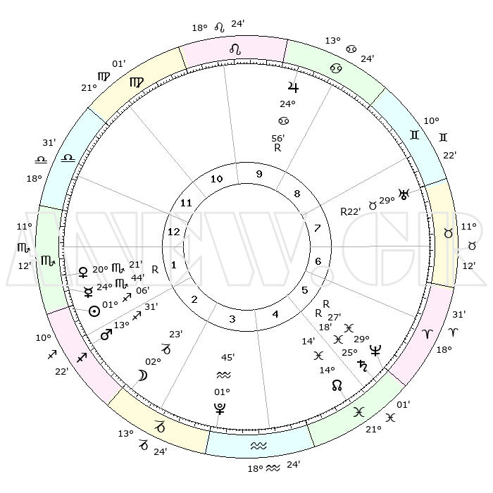 | | ΘΕΣΕΙΣ ΠΛΑΝΗΤΩΝ ΑΣΤΡΟΛΟΓΙΚΟΥ ΧΑΡΤΗ ΤΗΣ ΣΤΙΓΜΗΣ ΑΥΤΗΣ | | | | Πλανήτης | Ζώδιο | Μοίρες | Δεκαήμ. | Σε οίκο | Απόκλιση | | Ακμές των οίκων | | Ηλιος | Τοξότης | 01°02' | Πρώτο | 2 | 20 S 22 | | 1ος | 22°13' | Ζυγός | | Σελήνη | Αιγόκερως | 01°36' | Πρώτο | 3 | 28 S 13 | | 2ος | 20°11' | Σκορπιός | | Ερμής | Σκορπιός | 24°49'R | Τρίτο | 2 | 17 S 37 | | 3ος | 21°36' | Τοξότης | | Αφροδίτη | Σκορπιός | 20°16' | Τρίτο | 2 | 16 S 52 | | 4ος | 25°19' | Αιγόκερως | | Αρης | Τοξότης | 13°28' | Δεύτερο | 2 | 23 S 00 | | 5ος | 28°16' | Υδροχόος | | Δίας | Καρκίνος | 24°56'R | Τρίτο | 9 | 21 N 16 | | 6ος | 27°34' | Ιχθείς | | Κρόνος | Ιχθείς | 25°18'R | Τρίτο | 5 | 04 S 04 | | 7ος | 22°13' | Κριός | | Ουρανός | Ταύρος | 29°22'R | Τρίτο | 8 | 19 N 49 | | 8ος | 20°11' | Ταύρος | | Ποσειδώνας | Ιχθείς | 29°27'R | Τρίτο | 6 | 01 S 28 | | 9ος | 21°36' | Δίδυμοι | | Πλούτωνας | Υδροχόος | 01°45' | Πρώτο | 4 | 23 S 26 | | 10ος | 25°19' | Καρκίνος | | Β. Δεσμός | Ιχθείς | 14°14' | Δεύτερο | 5 | 06 S 12 | | 11ος | 28°16' | Λέων | | Ωροσκόπος | Ζυγός | 22°13' | Τρίτο | | | 12ος | 27°34' | Παρθένος | | Μεσουράνημα | Καρκίνος | 25°19' | Τρίτο | | | |