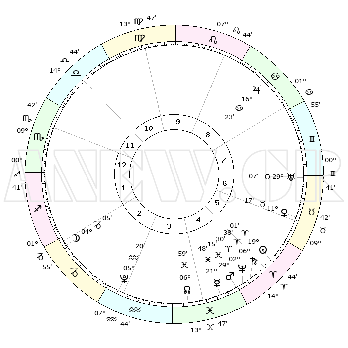 | | ΘΕΣΕΙΣ ΠΛΑΝΗΤΩΝ ΑΣΤΡΟΛΟΓΙΚΟΥ ΧΑΡΤΗ ΤΗΣ ΣΤΙΓΜΗΣ ΑΥΤΗΣ | | | | Πλανήτης | Ζώδιο | Μοίρες | Δεκαήμ. | Σε οίκο | Απόκλιση | | Ακμές των οίκων | | Ηλιος | Κριός | 18°57' | Δεύτερο | 6 | 07 N 25 | | 1ος | 10°20' | Σκορπιός | | Σελήνη | Αιγόκερως | 03°15' | Πρώτο | 2 | 28 S 04 | | 2ος | 09°26' | Τοξότης | | Ερμής | Ιχθείς | 21°43' | Τρίτο | 5 | 05 S 21 | | 3ος | 12°22' | Αιγόκερως | | Αφροδίτη | Ταύρος | 11°12' | Δεύτερο | 7 | 15 N 05 | | 4ος | 17°18' | Υδροχόος | | Αρης | Ιχθείς | 29°12' | Τρίτο | 5 | 01 S 15 | | 5ος | 19°57' | Ιχθείς | | Δίας | Καρκίνος | 16°22' | Δεύτερο | 9 | 22 N 48 | | 6ος | 17°33' | Κριός | | Κρόνος | Κριός | 06°37' | Πρώτο | 5 | 00 N 40 | | 7ος | 10°20' | Ταύρος | | Ουρανός | Ταύρος | 29°07' | Τρίτο | 7 | 19 N 47 | | 8ος | 09°26' | Δίδυμοι | | Ποσειδώνας | Κριός | 02°30' | Πρώτο | 5 | 00 S 13 | | 9ος | 12°22' | Καρκίνος | | Πλούτωνας | Υδροχόος | 05°20' | Πρώτο | 3 | 22 S 47 | | 10ος | 17°18' | Λέων | | Β. Δεσμός | Ιχθείς | 06°60' | Πρώτο | 4 | 08 S 57 | | 11ος | 19°57' | Παρθένος | | Ωροσκόπος | Σκορπιός | 10°20' | Δεύτερο | | | 12ος | 17°33' | Ζυγός | | Μεσουράνημα | Λέων | 17°18' | Δεύτερο | | | |