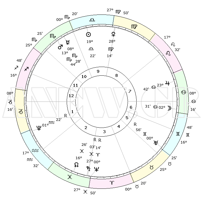| ΘΕΣΕΙΣ ΠΛΑΝΗΤΩΝ ΑΣΤΡΟΛΟΓΙΚΟΥ ΧΑΡΤΗ ΤΗΣ ΣΤΙΓΜΗΣ ΑΥΤΗΣ | | Πλανήτης | Ζώδιο | Μοίρες | Δεκαήμ. | Σε οίκο | Απόκλιση | | Ακμές των οίκων | Ηλιος | Ζυγός | 19°16' | Δεύτερο | 10 | 07 S 33 | | 1ος | 06°52' | Τοξότης | Σελήνη | Καρκίνος | 01°07' | Πρώτο | 7 | 28 N 30 | | 2ος | 09°03' | Αιγόκερως | Ερμής | Σκορπιός | 08°20' | Πρώτο | 11 | 15 S 39 | | 3ος | 15°54' | Υδροχόος | Αφροδίτη | Παρθένος | 28°07' | Τρίτο | 10 | 02 N 07 | | 4ος | 21°59' | Ιχθείς | Αρης | Σκορπιός | 13°40' | Δεύτερο | 11 | 16 S 08 | | 5ος | 22°04' | Κριός | Δίας | Καρκίνος | 23°42' | Τρίτο | 8 | 21 N 24 | | 6ος | 16°13' | Ταύρος | Κρόνος | Ιχθείς | 27°04'R | Τρίτο | 4 | 03 S 28 | | 7ος | 06°52' | Δίδυμοι | Ουρανός | Δίδυμοι | 00°56'R | Πρώτο | 6 | 20 N 08 | | 8ος | 09°03' | Καρκίνος | Ποσειδώνας | Κριός | 00°15'R | Πρώτο | 4 | 01 S 10 | | 9ος | 15°54' | Λέων | Πλούτωνας | Υδροχόος | 01°22'R | Πρώτο | 2 | 23 S 32 | | 10ος | 21°59' | Παρθένος | Β. Δεσμός | Ιχθείς | 16°26' | Δεύτερο | 3 | 05 S 21 | | 11ος | 22°04' | Ζυγός | Ωροσκόπος | Τοξότης | 06°52' | Πρώτο | | | 12ος | 16°13' | Σκορπιός | Μεσουράνημα | Παρθένος | 21°59' | Τρίτο | | | |