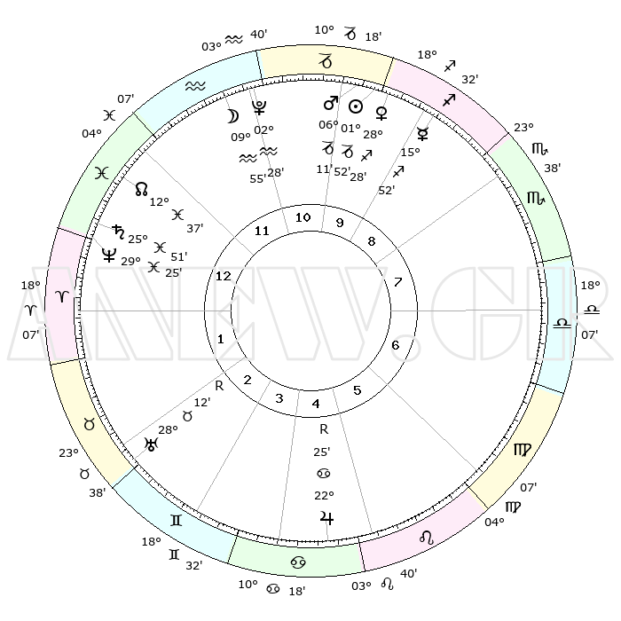 | | ΘΕΣΕΙΣ ΠΛΑΝΗΤΩΝ ΑΣΤΡΟΛΟΓΙΚΟΥ ΧΑΡΤΗ ΤΗΣ ΣΤΙΓΜΗΣ ΑΥΤΗΣ | | | | Πλανήτης | Ζώδιο | Μοίρες | Δεκαήμ. | Σε οίκο | Απόκλιση | | Ακμές των οίκων | | Ηλιος | Αιγόκερως | 01°48' | Πρώτο | 10 | 23 S 25 | | 1ος | 06°33' | Ιχθείς | | Σελήνη | Υδροχόος | 09°02' | Πρώτο | 12 | 20 S 36 | | 2ος | 21°18' | Κριός | | Ερμής | Τοξότης | 15°46' | Δεύτερο | 9 | 22 S 13 | | 3ος | 22°45' | Ταύρος | | Αφροδίτη | Τοξότης | 28°23' | Τρίτο | 10 | 23 S 36 | | 4ος | 16°33' | Δίδυμοι | | Αρης | Αιγόκερως | 06°07' | Πρώτο | 10 | 24 S 08 | | 5ος | 08°14' | Καρκίνος | | Δίας | Καρκίνος | 22°26'R | Τρίτο | 5 | 21 N 47 | | 6ος | 02°30' | Λέων | | Κρόνος | Ιχθείς | 25°51' | Τρίτο | 1 | 03 S 45 | | 7ος | 06°33' | Παρθένος | | Ουρανός | Ταύρος | 28°12'R | Τρίτο | 3 | 19 N 34 | | 8ος | 21°18' | Ζυγός | | Ποσειδώνας | Ιχθείς | 29°25' | Τρίτο | 1 | 01 S 27 | | 9ος | 22°45' | Σκορπιός | | Πλούτωνας | Υδροχόος | 02°28' | Πρώτο | 11 | 23 S 16 | | 10ος | 16°33' | Τοξότης | | Β. Δεσμός | Ιχθείς | 12°38' | Δεύτερο | 1 | 06 S 49 | | 11ος | 08°14' | Αιγόκερως | | Ωροσκόπος | Ιχθείς | 06°33' | Πρώτο | | | 12ος | 02°30' | Υδροχόος | | Μεσουράνημα | Τοξότης | 16°33' | Δεύτερο | | | |
