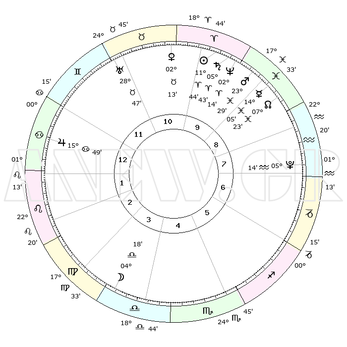 | | ΘΕΣΕΙΣ ΠΛΑΝΗΤΩΝ ΑΣΤΡΟΛΟΓΙΚΟΥ ΧΑΡΤΗ ΤΗΣ ΣΤΙΓΜΗΣ ΑΥΤΗΣ | | | | Πλανήτης | Ζώδιο | Μοίρες | Δεκαήμ. | Σε οίκο | Απόκλιση | | Ακμές των οίκων | | Ηλιος | Κριός | 11°40' | Δεύτερο | 10 | 04 N 37 | | 1ος | 11°15' | Καρκίνος | | Σελήνη | Ζυγός | 03°27' | Πρώτο | 4 | 03 S 22 | | 2ος | 01°41' | Λέων | | Ερμής | Ιχθείς | 14°02' | Δεύτερο | 9 | 07 S 32 | | 3ος | 24°26' | Λέων | | Αφροδίτη | Ταύρος | 02°08' | Πρώτο | 11 | 11 N 49 | | 4ος | 22°37' | Παρθένος | | Αρης | Ιχθείς | 23°26' | Τρίτο | 10 | 03 S 34 | | 5ος | 28°01' | Ζυγός | | Δίας | Καρκίνος | 15°48' | Δεύτερο | 1 | 22 N 52 | | 6ος | 06°47' | Τοξότης | | Κρόνος | Κριός | 05°43' | Πρώτο | 10 | 00 N 19 | | 7ος | 11°15' | Αιγόκερως | | Ουρανός | Ταύρος | 28°47' | Τρίτο | 11 | 19 N 43 | | 8ος | 01°41' | Υδροχόος | | Ποσειδώνας | Κριός | 02°13' | Πρώτο | 10 | 00 S 19 | | 9ος | 24°26' | Υδροχόος | | Πλούτωνας | Υδροχόος | 05°13' | Πρώτο | 8 | 22 S 47 | | 10ος | 22°37' | Ιχθείς | | Β. Δεσμός | Ιχθείς | 07°23' | Πρώτο | 9 | 08 S 48 | | 11ος | 28°01' | Κριός | | Ωροσκόπος | Καρκίνος | 11°15' | Δεύτερο | | | 12ος | 06°47' | Δίδυμοι | | Μεσουράνημα | Ιχθείς | 22°37' | Τρίτο | | | |