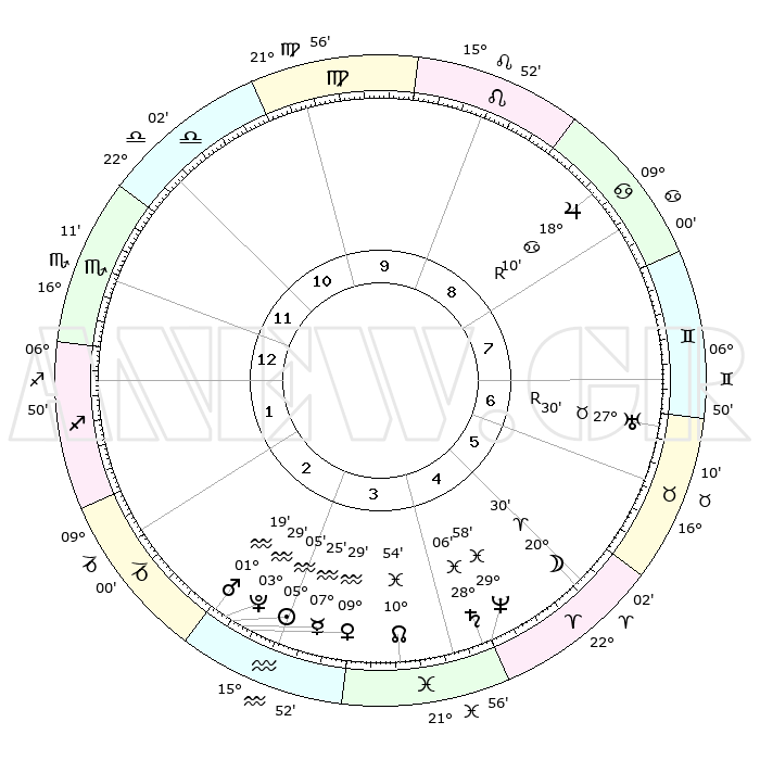 | | ΘΕΣΕΙΣ ΠΛΑΝΗΤΩΝ ΑΣΤΡΟΛΟΓΙΚΟΥ ΧΑΡΤΗ ΤΗΣ ΣΤΙΓΜΗΣ ΑΥΤΗΣ | | | | Πλανήτης | Ζώδιο | Μοίρες | Δεκαήμ. | Σε οίκο | Απόκλιση | | Ακμές των οίκων | | Ηλιος | Υδροχόος | 05°01' | Πρώτο | 3 | 19 S 00 | | 1ος | 16°46' | Σκορπιός | | Σελήνη | Κριός | 19°33' | Δεύτερο | 5 | 10 N 46 | | 2ος | 16°24' | Τοξότης | | Ερμής | Υδροχόος | 07°18' | Πρώτο | 3 | 20 S 28 | | 3ος | 20°07' | Αιγόκερως | | Αφροδίτη | Υδροχόος | 09°24' | Πρώτο | 3 | 19 S 05 | | 4ος | 25°31' | Υδροχόος | | Αρης | Υδροχόος | 01°16' | Πρώτο | 3 | 20 S 52 | | 5ος | 27°49' | Ιχθείς | | Δίας | Καρκίνος | 18°11'R | Δεύτερο | 8 | 22 N 29 | | 6ος | 24°38' | Κριός | | Κρόνος | Ιχθείς | 28°06' | Τρίτο | 5 | 02 S 46 | | 7ος | 16°46' | Ταύρος | | Ουρανός | Ταύρος | 27°30'R | Τρίτο | 7 | 19 N 25 | | 8ος | 16°24' | Δίδυμοι | | Ποσειδώνας | Ιχθείς | 29°58' | Τρίτο | 5 | 01 S 14 | | 9ος | 20°07' | Καρκίνος | | Πλούτωνας | Υδροχόος | 03°29' | Πρώτο | 3 | 23 S 04 | | 10ος | 25°31' | Λέων | | Β. Δεσμός | Ιχθείς | 10°54' | Δεύτερο | 4 | 07 S 29 | | 11ος | 27°49' | Παρθένος | | Ωροσκόπος | Σκορπιός | 16°46' | Δεύτερο | | | 12ος | 24°38' | Ζυγός | | Μεσουράνημα | Λέων | 25°31' | Τρίτο | | | |