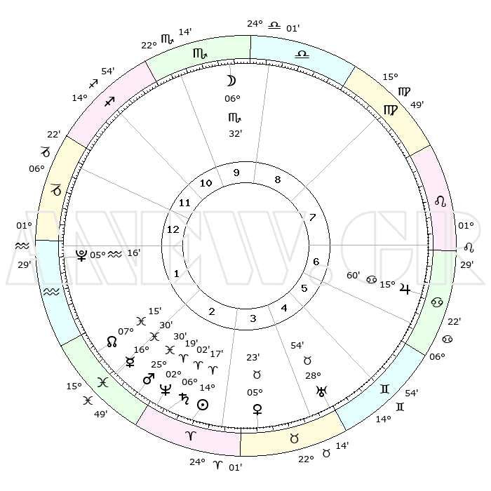 | | ΘΕΣΕΙΣ ΠΛΑΝΗΤΩΝ ΑΣΤΡΟΛΟΓΙΚΟΥ ΧΑΡΤΗ ΤΗΣ ΣΤΙΓΜΗΣ ΑΥΤΗΣ | | | | Πλανήτης | Ζώδιο | Μοίρες | Δεκαήμ. | Σε οίκο | Απόκλιση | | Ακμές των οίκων | | Ηλιος | Κριός | 14°14' | Δεύτερο | 3 | 05 N 36 | | 1ος | 09°46' | Αιγόκερως | | Σελήνη | Σκορπιός | 05°51' | Πρώτο | 10 | 17 S 34 | | 2ος | 19°25' | Υδροχόος | | Ερμής | Ιχθείς | 16°27' | Δεύτερο | 2 | 06 S 56 | | 3ος | 29°43' | Ιχθείς | | Αφροδίτη | Ταύρος | 05°19' | Πρώτο | 4 | 13 N 00 | | 4ος | 01°56' | Ταύρος | | Αρης | Ιχθείς | 25°27' | Τρίτο | 2 | 02 S 45 | | 5ος | 26°49' | Ταύρος | | Δίας | Καρκίνος | 15°59' | Δεύτερο | 7 | 22 N 51 | | 6ος | 18°09' | Δίδυμοι | | Κρόνος | Κριός | 06°02' | Πρώτο | 3 | 00 N 26 | | 7ος | 09°46' | Καρκίνος | | Ουρανός | Ταύρος | 28°54' | Τρίτο | 5 | 19 N 44 | | 8ος | 19°25' | Λέων | | Ποσειδώνας | Κριός | 02°19' | Πρώτο | 3 | 00 S 17 | | 9ος | 29°43' | Παρθένος | | Πλούτωνας | Υδροχόος | 05°16' | Πρώτο | 1 | 22 S 47 | | 10ος | 01°56' | Σκορπιός | | Β. Δεσμός | Ιχθείς | 07°15' | Πρώτο | 2 | 08 S 51 | | 11ος | 26°49' | Σκορπιός | | Ωροσκόπος | Αιγόκερως | 09°46' | Πρώτο | | | 12ος | 18°09' | Τοξότης | | Μεσουράνημα | Σκορπιός | 01°56' | Πρώτο | | | |