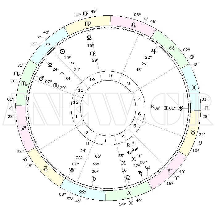 | ΘΕΣΕΙΣ ΠΛΑΝΗΤΩΝ ΑΣΤΡΟΛΟΓΙΚΟΥ ΧΑΡΤΗ ΤΗΣ ΣΤΙΓΜΗΣ ΑΥΤΗΣ | | Πλανήτης | Ζώδιο | Μοίρες | Δεκαήμ. | Σε οίκο | Απόκλιση | | Ακμές των οίκων | Ηλιος | Ζυγός | 10°20' | Δεύτερο | 11 | 04 S 06 | | 1ος | 13°18' | Σκορπιός | Σελήνη | Υδροχόος | 19°16' | Δεύτερο | 3 | 17 S 28 | | 2ος | 12°39' | Τοξότης | Ερμής | Ζυγός | 24°49' | Τρίτο | 12 | 09 S 57 | | 3ος | 15°55' | Αιγόκερως | Αφροδίτη | Παρθένος | 16°55' | Δεύτερο | 10 | 06 N 24 | | 4ος | 21°04' | Υδροχόος | Αρης | Σκορπιός | 07°26' | Πρώτο | 12 | 14 S 05 | | 5ος | 23°35' | Ιχθείς | Δίας | Καρκίνος | 22°44' | Τρίτο | 9 | 21 N 32 | | 6ος | 20°50' | Κριός | Κρόνος | Ιχθείς | 27°43'R | Τρίτο | 5 | 03 S 13 | | 7ος | 13°18' | Ταύρος | Ουρανός | Δίδυμοι | 01°09'R | Πρώτο | 7 | 20 N 11 | | 8ος | 12°39' | Δίδυμοι | Ποσειδώνας | Κριός | 00°29'R | Πρώτο | 5 | 01 S 04 | | 9ος | 15°55' | Καρκίνος | Πλούτωνας | Υδροχόος | 01°24'R | Πρώτο | 3 | 23 S 32 | | 10ος | 21°04' | Λέων | Β. Δεσμός | Ιχθείς | 16°55' | Δεύτερο | 4 | 05 S 10 | | 11ος | 23°35' | Παρθένος | Ωροσκόπος | Σκορπιός | 13°18' | Δεύτερο | | | 12ος | 20°50' | Ζυγός | Μεσουράνημα | Λέων | 21°04' | Τρίτο | | | |