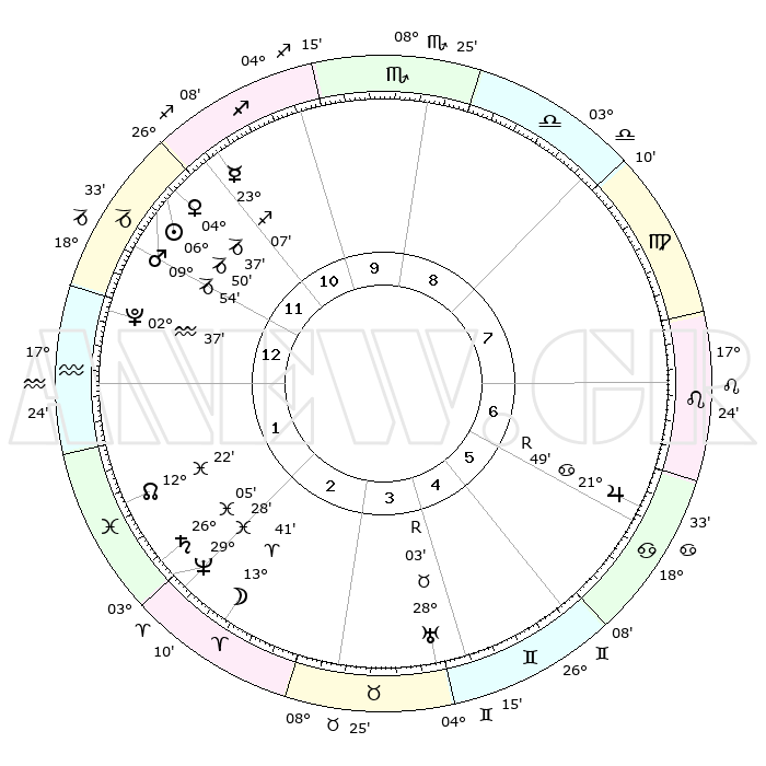 | | ΘΕΣΕΙΣ ΠΛΑΝΗΤΩΝ ΑΣΤΡΟΛΟΓΙΚΟΥ ΧΑΡΤΗ ΤΗΣ ΣΤΙΓΜΗΣ ΑΥΤΗΣ | | | | Πλανήτης | Ζώδιο | Μοίρες | Δεκαήμ. | Σε οίκο | Απόκλιση | | Ακμές των οίκων | | Ηλιος | Αιγόκερως | 06°46' | Πρώτο | 12 | 23 S 16 | | 1ος | 14°43' | Αιγόκερως | | Σελήνη | Κριός | 12°37' | Δεύτερο | 3 | 07 N 25 | | 2ος | 25°37' | Υδροχόος | | Ερμής | Τοξότης | 23°00' | Τρίτο | 12 | 23 S 23 | | 3ος | 05°45' | Κριός | | Αφροδίτη | Αιγόκερως | 04°31' | Πρώτο | 12 | 23 S 43 | | 4ος | 07°02' | Ταύρος | | Αρης | Αιγόκερως | 09°50' | Πρώτο | 12 | 23 S 56 | | 5ος | 01°16' | Δίδυμοι | | Δίας | Καρκίνος | 21°50'R | Τρίτο | 7 | 21 N 53 | | 6ος | 22°30' | Δίδυμοι | | Κρόνος | Ιχθείς | 26°05' | Τρίτο | 2 | 03 S 39 | | 7ος | 14°43' | Καρκίνος | | Ουρανός | Ταύρος | 28°03'R | Τρίτο | 4 | 19 N 32 | | 8ος | 25°37' | Λέων | | Ποσειδώνας | Ιχθείς | 29°28' | Τρίτο | 2 | 01 S 26 | | 9ος | 05°45' | Ζυγός | | Πλούτωνας | Υδροχόος | 02°37' | Πρώτο | 1 | 23 S 15 | | 10ος | 07°02' | Σκορπιός | | Β. Δεσμός | Ιχθείς | 12°22' | Δεύτερο | 2 | 06 S 55 | | 11ος | 01°16' | Τοξότης | | Ωροσκόπος | Αιγόκερως | 14°43' | Δεύτερο | | | 12ος | 22°30' | Τοξότης | | Μεσουράνημα | Σκορπιός | 07°02' | Πρώτο | | | |