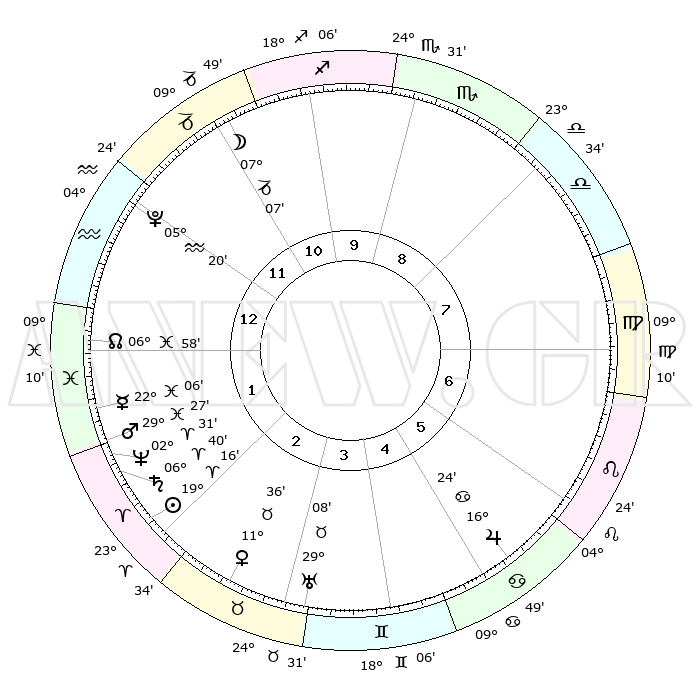 | | ΘΕΣΕΙΣ ΠΛΑΝΗΤΩΝ ΑΣΤΡΟΛΟΓΙΚΟΥ ΧΑΡΤΗ ΤΗΣ ΣΤΙΓΜΗΣ ΑΥΤΗΣ | | | | Πλανήτης | Ζώδιο | Μοίρες | Δεκαήμ. | Σε οίκο | Απόκλιση | | Ακμές των οίκων | | Ηλιος | Κριός | 19°12' | Δεύτερο | 2 | 07 N 31 | | 1ος | 03°48' | Υδροχόος | | Σελήνη | Αιγόκερως | 06°17' | Πρώτο | 11 | 27 S 50 | | 2ος | 18°28' | Ιχθείς | | Ερμής | Ιχθείς | 22°01' | Τρίτο | 2 | 05 S 15 | | 3ος | 26°17' | Κριός | | Αφροδίτη | Ταύρος | 11°31' | Δεύτερο | 3 | 15 N 11 | | 4ος | 24°07' | Ταύρος | | Αρης | Ιχθείς | 29°24' | Τρίτο | 2 | 01 S 10 | | 5ος | 16°37' | Δίδυμοι | | Δίας | Καρκίνος | 16°24' | Δεύτερο | 6 | 22 N 48 | | 6ος | 08°12' | Καρκίνος | | Κρόνος | Κριός | 06°39' | Πρώτο | 2 | 00 N 41 | | 7ος | 03°48' | Λέων | | Ουρανός | Ταύρος | 29°08' | Τρίτο | 4 | 19 N 48 | | 8ος | 18°28' | Παρθένος | | Ποσειδώνας | Κριός | 02°30' | Πρώτο | 2 | 00 S 12 | | 9ος | 26°17' | Ζυγός | | Πλούτωνας | Υδροχόος | 05°20' | Πρώτο | 1 | 22 S 47 | | 10ος | 24°07' | Σκορπιός | | Β. Δεσμός | Ιχθείς | 06°59' | Πρώτο | 1 | 08 S 57 | | 11ος | 16°37' | Τοξότης | | Ωροσκόπος | Υδροχόος | 03°48' | Πρώτο | | | 12ος | 08°12' | Αιγόκερως | | Μεσουράνημα | Σκορπιός | 24°07' | Τρίτο | | | |