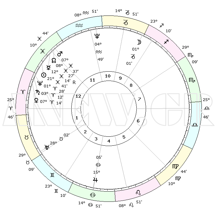| | ΘΕΣΕΙΣ ΠΛΑΝΗΤΩΝ ΑΣΤΡΟΛΟΓΙΚΟΥ ΧΑΡΤΗ ΤΗΣ ΣΤΙΓΜΗΣ ΑΥΤΗΣ | | | | Πλανήτης | Ζώδιο | Μοίρες | Δεκαήμ. | Σε οίκο | Απόκλιση | | Ακμές των οίκων | | Ηλιος | Ιχθείς | 21°38' | Τρίτο | 12 | 03 S 19 | | 1ος | 23°10' | Ιχθείς | | Σελήνη | Αιγόκερως | 00°21' | Πρώτο | 10 | 28 S 21 | | 2ος | 05°02' | Ταύρος | | Ερμής | Ιχθείς | 12°17'R | Δεύτερο | 12 | 04 S 10 | | 3ος | 03°31' | Δίδυμοι | | Αφροδίτη | Κριός | 07°10' | Πρώτο | 1 | 01 N 48 | | 4ος | 26°10' | Δίδυμοι | | Αρης | Ιχθείς | 07°35' | Πρώτο | 12 | 09 S 44 | | 5ος | 18°12' | Καρκίνος | | Δίας | Καρκίνος | 15°05' | Δεύτερο | 4 | 22 N 56 | | 6ος | 14°36' | Λέων | | Κρόνος | Κριός | 03°12' | Πρώτο | 1 | 00 S 41 | | 7ος | 23°10' | Παρθένος | | Ουρανός | Ταύρος | 28°01' | Τρίτο | 2 | 19 N 33 | | 8ος | 05°02' | Σκορπιός | | Ποσειδώνας | Κριός | 01°28' | Πρώτο | 1 | 00 S 37 | | 9ος | 03°31' | Τοξότης | | Πλούτωνας | Υδροχόος | 04°49' | Πρώτο | 11 | 22 S 50 | | 10ος | 26°10' | Τοξότης | | Β. Δεσμός | Ιχθείς | 08°27' | Πρώτο | 12 | 08 S 24 | | 11ος | 18°12' | Αιγόκερως | | Ωροσκόπος | Ιχθείς | 23°10' | Τρίτο | | | 12ος | 14°36' | Υδροχόος | | Μεσουράνημα | Τοξότης | 26°10' | Τρίτο | | | |