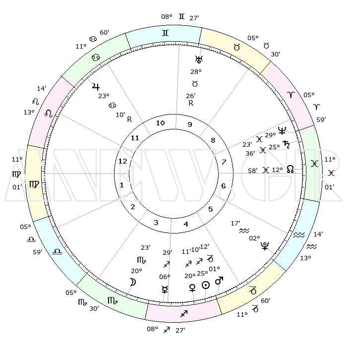 | | ΘΕΣΕΙΣ ΠΛΑΝΗΤΩΝ ΑΣΤΡΟΛΟΓΙΚΟΥ ΧΑΡΤΗ ΤΗΣ ΣΤΙΓΜΗΣ ΑΥΤΗΣ | | | | Πλανήτης | Ζώδιο | Μοίρες | Δεκαήμ. | Σε οίκο | Απόκλιση | | Ακμές των οίκων | | Ηλιος | Τοξότης | 24°50' | Τρίτο | 8 | 23 S 20 | | 1ος | 25°09' | Ταύρος | | Σελήνη | Σκορπιός | 16°28' | Δεύτερο | 6 | 21 S 03 | | 2ος | 20°59' | Δίδυμοι | | Ερμής | Τοξότης | 06°02' | Πρώτο | 7 | 19 S 59 | | 3ος | 12°36' | Καρκίνος | | Αφροδίτη | Τοξότης | 19°46' | Δεύτερο | 7 | 22 S 56 | | 4ος | 05°03' | Λέων | | Αρης | Αιγόκερως | 00°57' | Πρώτο | 8 | 24 S 13 | | 5ος | 02°42' | Παρθένος | | Δίας | Καρκίνος | 23°12'R | Τρίτο | 3 | 21 N 38 | | 6ος | 10°20' | Ζυγός | | Κρόνος | Ιχθείς | 25°35' | Τρίτο | 11 | 03 S 53 | | 7ος | 25°09' | Σκορπιός | | Ουρανός | Ταύρος | 28°26'R | Τρίτο | 1 | 19 N 37 | | 8ος | 20°59' | Τοξότης | | Ποσειδώνας | Ιχθείς | 29°23' | Τρίτο | 11 | 01 S 29 | | 9ος | 12°36' | Αιγόκερως | | Πλούτωνας | Υδροχόος | 02°17' | Πρώτο | 9 | 23 S 19 | | 10ος | 05°03' | Υδροχόος | | Β. Δεσμός | Ιχθείς | 12°59' | Δεύτερο | 11 | 06 S 41 | | 11ος | 02°42' | Ιχθείς | | Ωροσκόπος | Ταύρος | 25°09' | Τρίτο | | | 12ος | 10°20' | Κριός | | Μεσουράνημα | Υδροχόος | 05°03' | Πρώτο | | | |