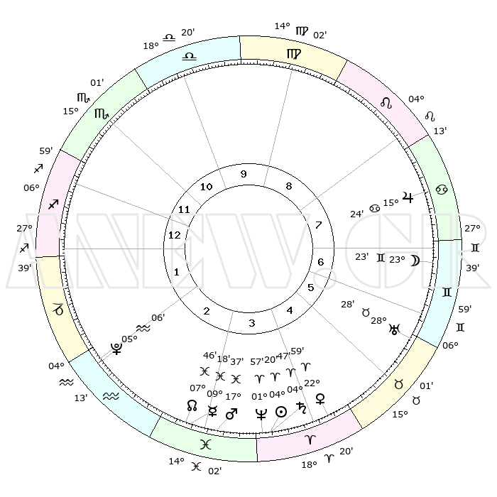 | | ΘΕΣΕΙΣ ΠΛΑΝΗΤΩΝ ΑΣΤΡΟΛΟΓΙΚΟΥ ΧΑΡΤΗ ΤΗΣ ΣΤΙΓΜΗΣ ΑΥΤΗΣ | | | | Πλανήτης | Ζώδιο | Μοίρες | Δεκαήμ. | Σε οίκο | Απόκλιση | | Ακμές των οίκων | | Ηλιος | Κριός | 04°16' | Πρώτο | 4 | 01 N 42 | | 1ος | 04°59' | Τοξότης | | Σελήνη | Δίδυμοι | 22°20' | Τρίτο | 7 | 28 N 17 | | 2ος | 06°51' | Αιγόκερως | | Ερμής | Ιχθείς | 09°16' | Πρώτο | 3 | 08 S 04 | | 3ος | 13°23' | Υδροχόος | | Αφροδίτη | Κριός | 22°54' | Τρίτο | 5 | 08 N 14 | | 4ος | 19°29' | Ιχθείς | | Αρης | Ιχθείς | 17°34' | Δεύτερο | 3 | 05 S 54 | | 5ος | 19°51' | Κριός | | Δίας | Καρκίνος | 15°24' | Δεύτερο | 8 | 22 N 54 | | 6ος | 14°14' | Ταύρος | | Κρόνος | Κριός | 04°47' | Πρώτο | 4 | 00 S 03 | | 7ος | 04°59' | Δίδυμοι | | Ουρανός | Ταύρος | 28°28' | Τρίτο | 6 | 19 N 39 | | 8ος | 06°51' | Καρκίνος | | Ποσειδώνας | Κριός | 01°57' | Πρώτο | 4 | 00 S 26 | | 9ος | 13°23' | Λέων | | Πλούτωνας | Υδροχόος | 05°06' | Πρώτο | 2 | 22 S 48 | | 10ος | 19°29' | Παρθένος | | Β. Δεσμός | Ιχθείς | 07°47' | Πρώτο | 3 | 08 S 39 | | 11ος | 19°51' | Ζυγός | | Ωροσκόπος | Τοξότης | 04°59' | Πρώτο | | | 12ος | 14°14' | Σκορπιός | | Μεσουράνημα | Παρθένος | 19°29' | Δεύτερο | | | |