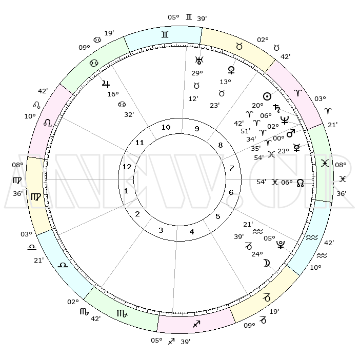 | | ΘΕΣΕΙΣ ΠΛΑΝΗΤΩΝ ΑΣΤΡΟΛΟΓΙΚΟΥ ΧΑΡΤΗ ΤΗΣ ΣΤΙΓΜΗΣ ΑΥΤΗΣ | | | | Πλανήτης | Ζώδιο | Μοίρες | Δεκαήμ. | Σε οίκο | Απόκλιση | | Ακμές των οίκων | | Ηλιος | Κριός | 20°38' | Τρίτο | 9 | 08 N 03 | | 1ος | 21°01' | Λέων | | Σελήνη | Αιγόκερως | 23°55' | Τρίτο | 6 | 24 S 52 | | 2ος | 13°56' | Παρθένος | | Ερμής | Ιχθείς | 23°49' | Τρίτο | 8 | 04 S 38 | | 3ος | 11°42' | Ζυγός | | Αφροδίτη | Ταύρος | 13°19' | Δεύτερο | 9 | 15 N 48 | | 4ος | 14°24' | Σκορπιός | | Αρης | Κριός | 00°32' | Πρώτο | 8 | 00 S 42 | | 5ος | 19°14' | Τοξότης | | Δίας | Καρκίνος | 16°32' | Δεύτερο | 11 | 22 N 47 | | 6ος | 22°01' | Αιγόκερως | | Κρόνος | Κριός | 06°50' | Πρώτο | 8 | 00 N 45 | | 7ος | 21°01' | Υδροχόος | | Ουρανός | Ταύρος | 29°12' | Τρίτο | 10 | 19 N 49 | | 8ος | 13°56' | Ιχθείς | | Ποσειδώνας | Κριός | 02°34' | Πρώτο | 8 | 00 S 11 | | 9ος | 11°42' | Κριός | | Πλούτωνας | Υδροχόος | 05°21' | Πρώτο | 6 | 22 S 47 | | 10ος | 14°24' | Ταύρος | | Β. Δεσμός | Ιχθείς | 06°54' | Πρώτο | 7 | 08 S 59 | | 11ος | 19°14' | Δίδυμοι | | Ωροσκόπος | Λέων | 21°01' | Τρίτο | | | 12ος | 22°01' | Καρκίνος | | Μεσουράνημα | Ταύρος | 14°24' | Δεύτερο | | | |