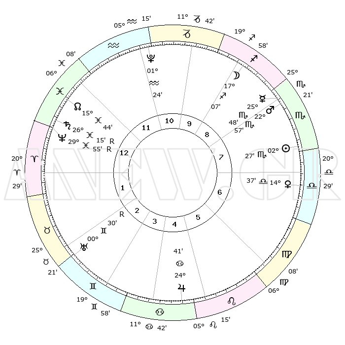 | | ΘΕΣΕΙΣ ΠΛΑΝΗΤΩΝ ΑΣΤΡΟΛΟΓΙΚΟΥ ΧΑΡΤΗ ΤΗΣ ΣΤΙΓΜΗΣ ΑΥΤΗΣ | | | | Πλανήτης | Ζώδιο | Μοίρες | Δεκαήμ. | Σε οίκο | Απόκλιση | | Ακμές των οίκων | | Ηλιος | Σκορπιός | 02°01' | Πρώτο | 1 | 12 S 10 | | 1ος | 00°07' | Σκορπιός | | Σελήνη | Τοξότης | 11°60' | Δεύτερο | 2 | 27 S 17 | | 2ος | 28°32' | Σκορπιός | | Ερμής | Σκορπιός | 25°18' | Τρίτο | 1 | 21 S 39 | | 3ος | 00°30' | Αιγόκερως | | Αφροδίτη | Ζυγός | 14°05' | Δεύτερο | 12 | 04 S 08 | | 4ος | 04°42' | Υδροχόος | | Αρης | Σκορπιός | 22°39' | Τρίτο | 1 | 18 S 45 | | 5ος | 07°37' | Ιχθείς | | Δίας | Καρκίνος | 24°39' | Τρίτο | 9 | 21 N 15 | | 6ος | 06°16' | Κριός | | Κρόνος | Ιχθείς | 26°16'R | Τρίτο | 5 | 03 S 46 | | 7ος | 00°07' | Ταύρος | | Ουρανός | Δίδυμοι | 00°31'R | Πρώτο | 8 | 20 N 03 | | 8ος | 28°32' | Ταύρος | | Ποσειδώνας | Ιχθείς | 29°56'R | Τρίτο | 5 | 01 S 17 | | 9ος | 00°30' | Καρκίνος | | Πλούτωνας | Υδροχόος | 01°24' | Πρώτο | 3 | 23 S 32 | | 10ος | 04°42' | Λέων | | Β. Δεσμός | Ιχθείς | 15°46' | Δεύτερο | 5 | 05 S 37 | | 11ος | 07°37' | Παρθένος | | Ωροσκόπος | Σκορπιός | 00°07' | Πρώτο | | | 12ος | 06°16' | Ζυγός | | Μεσουράνημα | Λέων | 04°42' | Πρώτο | | | |