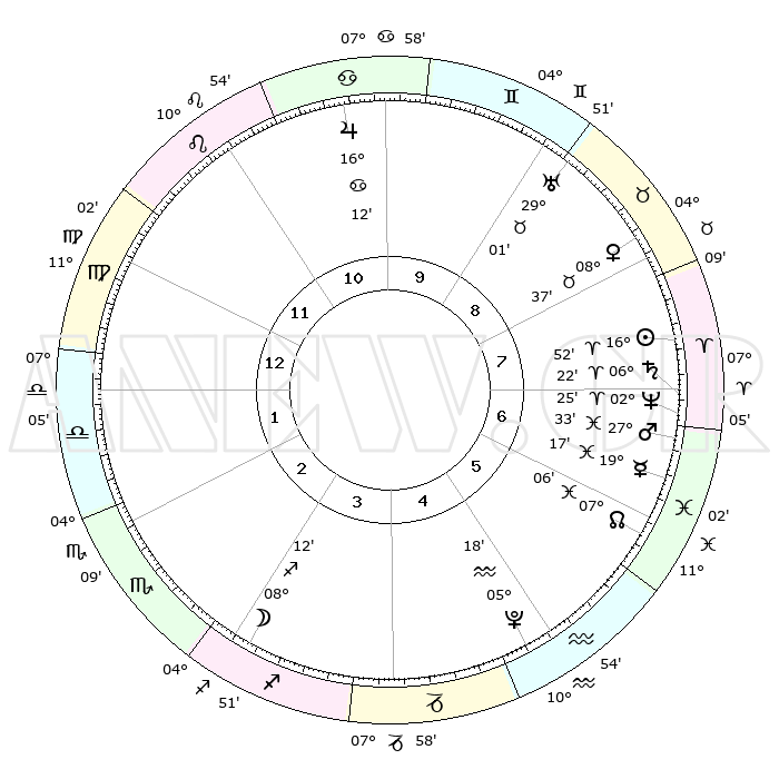 | | ΘΕΣΕΙΣ ΠΛΑΝΗΤΩΝ ΑΣΤΡΟΛΟΓΙΚΟΥ ΧΑΡΤΗ ΤΗΣ ΣΤΙΓΜΗΣ ΑΥΤΗΣ | | | | Πλανήτης | Ζώδιο | Μοίρες | Δεκαήμ. | Σε οίκο | Απόκλιση | | Ακμές των οίκων | | Ηλιος | Κριός | 16°49' | Δεύτερο | 8 | 06 N 36 | | 1ος | 19°16' | Παρθένος | | Σελήνη | Τοξότης | 07°29' | Πρώτο | 3 | 26 S 39 | | 2ος | 14°60' | Ζυγός | | Ερμής | Ιχθείς | 19°13' | Δεύτερο | 6 | 06 S 08 | | 3ος | 14°59' | Σκορπιός | | Αφροδίτη | Ταύρος | 08°33' | Πρώτο | 8 | 14 N 09 | | 4ος | 17°54' | Τοξότης | | Αρης | Ιχθείς | 27°30' | Τρίτο | 7 | 01 S 56 | | 5ος | 21°07' | Αιγόκερως | | Δίας | Καρκίνος | 16°11' | Δεύτερο | 10 | 22 N 49 | | 6ος | 21°58' | Υδροχόος | | Κρόνος | Κριός | 06°21' | Πρώτο | 7 | 00 N 34 | | 7ος | 19°16' | Ιχθείς | | Ουρανός | Ταύρος | 29°01' | Τρίτο | 9 | 19 N 46 | | 8ος | 14°60' | Κριός | | Ποσειδώνας | Κριός | 02°25' | Πρώτο | 7 | 00 S 14 | | 9ος | 14°59' | Ταύρος | | Πλούτωνας | Υδροχόος | 05°18' | Πρώτο | 5 | 22 S 47 | | 10ος | 17°54' | Δίδυμοι | | Β. Δεσμός | Ιχθείς | 07°06' | Πρώτο | 6 | 08 S 54 | | 11ος | 21°07' | Καρκίνος | | Ωροσκόπος | Παρθένος | 19°16' | Δεύτερο | | | 12ος | 21°58' | Λέων | | Μεσουράνημα | Δίδυμοι | 17°54' | Δεύτερο | | | |