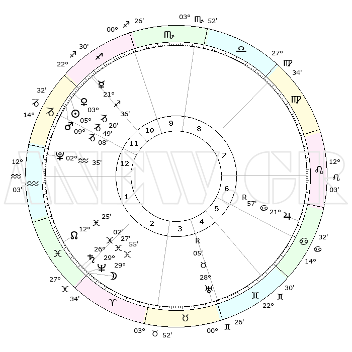 | | ΘΕΣΕΙΣ ΠΛΑΝΗΤΩΝ ΑΣΤΡΟΛΟΓΙΚΟΥ ΧΑΡΤΗ ΤΗΣ ΣΤΙΓΜΗΣ ΑΥΤΗΣ | | | | Πλανήτης | Ζώδιο | Μοίρες | Δεκαήμ. | Σε οίκο | Απόκλιση | | Ακμές των οίκων | | Ηλιος | Αιγόκερως | 05°45' | Πρώτο | 12 | 23 S 18 | | 1ος | 14°14' | Αιγόκερως | | Σελήνη | Ιχθείς | 29°01' | Τρίτο | 2 | 01 N 02 | | 2ος | 24°60' | Υδροχόος | | Ερμής | Τοξότης | 21°30' | Τρίτο | 11 | 23 S 11 | | 3ος | 05°09' | Κριός | | Αφροδίτη | Αιγόκερως | 03°15' | Πρώτο | 12 | 23 S 43 | | 4ος | 06°32' | Ταύρος | | Αρης | Αιγόκερως | 09°04' | Πρώτο | 12 | 23 S 59 | | 5ος | 00°50' | Δίδυμοι | | Δίας | Καρκίνος | 21°58'R | Τρίτο | 7 | 21 N 52 | | 6ος | 22°04' | Δίδυμοι | | Κρόνος | Ιχθείς | 26°02' | Τρίτο | 2 | 03 S 40 | | 7ος | 14°14' | Καρκίνος | | Ουρανός | Ταύρος | 28°05'R | Τρίτο | 4 | 19 N 32 | | 8ος | 24°60' | Λέων | | Ποσειδώνας | Ιχθείς | 29°27' | Τρίτο | 2 | 01 S 27 | | 9ος | 05°09' | Ζυγός | | Πλούτωνας | Υδροχόος | 02°35' | Πρώτο | 1 | 23 S 15 | | 10ος | 06°32' | Σκορπιός | | Β. Δεσμός | Ιχθείς | 12°25' | Δεύτερο | 2 | 06 S 54 | | 11ος | 00°50' | Τοξότης | | Ωροσκόπος | Αιγόκερως | 14°14' | Δεύτερο | | | 12ος | 22°04' | Τοξότης | | Μεσουράνημα | Σκορπιός | 06°32' | Πρώτο | | | |