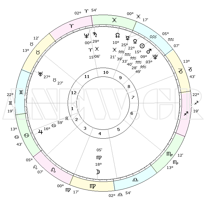 | | ΘΕΣΕΙΣ ΠΛΑΝΗΤΩΝ ΑΣΤΡΟΛΟΓΙΚΟΥ ΧΑΡΤΗ ΤΗΣ ΣΤΙΓΜΗΣ ΑΥΤΗΣ | | | | Πλανήτης | Ζώδιο | Μοίρες | Δεκαήμ. | Σε οίκο | Απόκλιση | | Ακμές των οίκων | | Ηλιος | Υδροχόος | 15°35' | Δεύτερο | 10 | 16 S 10 | | 1ος | 19°58' | Ταύρος | | Σελήνη | Παρθένος | 17°02' | Δεύτερο | 5 | 04 N 27 | | 2ος | 16°59' | Δίδυμοι | | Ερμής | Υδροχόος | 25°31' | Τρίτο | 10 | 14 S 32 | | 3ος | 08°54' | Καρκίνος | | Αφροδίτη | Υδροχόος | 22°27' | Τρίτο | 10 | 15 S 21 | | 4ος | 01°03' | Λέων | | Αρης | Υδροχόος | 09°24' | Πρώτο | 10 | 18 S 55 | | 5ος | 27°55' | Λέων | | Δίας | Καρκίνος | 16°59'R | Δεύτερο | 3 | 22 N 40 | | 6ος | 04°36' | Ζυγός | | Κρόνος | Ιχθείς | 29°06' | Τρίτο | 11 | 02 S 21 | | 7ος | 19°58' | Σκορπιός | | Ουρανός | Ταύρος | 27°27' | Τρίτο | 1 | 19 N 24 | | 8ος | 16°59' | Τοξότης | | Ποσειδώνας | Κριός | 00°14' | Πρώτο | 11 | 01 S 07 | | 9ος | 08°54' | Αιγόκερως | | Πλούτωνας | Υδροχόος | 03°49' | Πρώτο | 10 | 23 S 00 | | 10ος | 01°03' | Υδροχόος | | Β. Δεσμός | Ιχθείς | 10°21' | Δεύτερο | 11 | 07 S 41 | | 11ος | 27°55' | Υδροχόος | | Ωροσκόπος | Ταύρος | 19°58' | Δεύτερο | | | 12ος | 04°36' | Κριός | | Μεσουράνημα | Υδροχόος | 01°03' | Πρώτο | | | |
