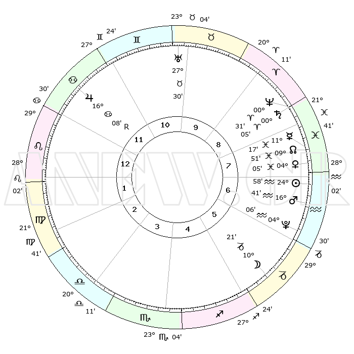 | | ΘΕΣΕΙΣ ΠΛΑΝΗΤΩΝ ΑΣΤΡΟΛΟΓΙΚΟΥ ΧΑΡΤΗ ΤΗΣ ΣΤΙΓΜΗΣ ΑΥΤΗΣ | | | | Πλανήτης | Ζώδιο | Μοίρες | Δεκαήμ. | Σε οίκο | Απόκλιση | | Ακμές των οίκων | | Ηλιος | Υδροχόος | 24°54' | Τρίτο | 7 | 13 S 13 | | 1ος | 08°19' | Λέων | | Σελήνη | Αιγόκερως | 09°31' | Πρώτο | 6 | 27 S 37 | | 2ος | 00°00' | Παρθένος | | Ερμής | Ιχθείς | 11°11' | Δεύτερο | 8 | 07 S 36 | | 3ος | 26°11' | Παρθένος | | Αφροδίτη | Ιχθείς | 03°60' | Πρώτο | 8 | 11 S 24 | | 4ος | 28°06' | Ζυγός | | Αρης | Υδροχόος | 16°38' | Δεύτερο | 7 | 16 S 52 | | 5ος | 03°48' | Τοξότης | | Δίας | Καρκίνος | 16°08'R | Δεύτερο | 12 | 22 N 47 | | 6ος | 08°12' | Αιγόκερως | | Κρόνος | Κριός | 00°04' | Πρώτο | 9 | 01 S 57 | | 7ος | 08°19' | Υδροχόος | | Ουρανός | Ταύρος | 27°30' | Τρίτο | 10 | 19 N 25 | | 8ος | 00°00' | Ιχθείς | | Ποσειδώνας | Κριός | 00°31' | Πρώτο | 9 | 01 S 00 | | 9ος | 26°11' | Ιχθείς | | Πλούτωνας | Υδροχόος | 04°06' | Πρώτο | 6 | 22 S 57 | | 10ος | 28°06' | Κριός | | Β. Δεσμός | Ιχθείς | 09°52' | Πρώτο | 8 | 07 S 52 | | 11ος | 03°48' | Δίδυμοι | | Ωροσκόπος | Λέων | 08°19' | Πρώτο | | | 12ος | 08°12' | Καρκίνος | | Μεσουράνημα | Κριός | 28°06' | Τρίτο | | | |