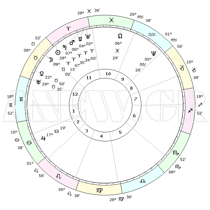 | | ΘΕΣΕΙΣ ΠΛΑΝΗΤΩΝ ΑΣΤΡΟΛΟΓΙΚΟΥ ΧΑΡΤΗ ΤΗΣ ΣΤΙΓΜΗΣ ΑΥΤΗΣ | | | | Πλανήτης | Ζώδιο | Μοίρες | Δεκαήμ. | Σε οίκο | Απόκλιση | | Ακμές των οίκων | | Ηλιος | Κριός | 28°11' | Τρίτο | 12 | 10 N 50 | | 1ος | 21°16' | Ταύρος | | Σελήνη | Ταύρος | 08°01' | Πρώτο | 12 | 18 N 22 | | 2ος | 17°59' | Δίδυμοι | | Ερμής | Κριός | 04°28' | Πρώτο | 11 | 00 S 39 | | 3ος | 09°48' | Καρκίνος | | Αφροδίτη | Ταύρος | 22°45' | Τρίτο | 1 | 18 N 46 | | 4ος | 02°02' | Λέων | | Αρης | Κριός | 06°32' | Πρώτο | 12 | 01 N 42 | | 5ος | 29°05' | Λέων | | Δίας | Καρκίνος | 17°19' | Δεύτερο | 3 | 22 N 42 | | 6ος | 06°00' | Ζυγός | | Κρόνος | Κριός | 07°46' | Πρώτο | 12 | 01 N 06 | | 7ος | 21°16' | Σκορπιός | | Ουρανός | Ταύρος | 29°35' | Τρίτο | 1 | 19 N 54 | | 8ος | 17°59' | Τοξότης | | Ποσειδώνας | Κριός | 02°50' | Πρώτο | 11 | 00 S 05 | | 9ος | 09°48' | Αιγόκερως | | Πλούτωνας | Υδροχόος | 05°26' | Πρώτο | 10 | 22 S 47 | | 10ος | 02°02' | Υδροχόος | | Β. Δεσμός | Ιχθείς | 06°30' | Πρώτο | 11 | 09 S 08 | | 11ος | 29°05' | Υδροχόος | | Ωροσκόπος | Ταύρος | 21°16' | Τρίτο | | | 12ος | 06°00' | Κριός | | Μεσουράνημα | Υδροχόος | 02°02' | Πρώτο | | | |