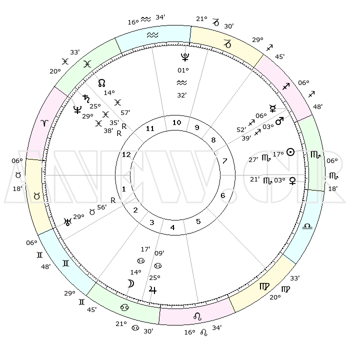 | | ΘΕΣΕΙΣ ΠΛΑΝΗΤΩΝ ΑΣΤΡΟΛΟΓΙΚΟΥ ΧΑΡΤΗ ΤΗΣ ΣΤΙΓΜΗΣ ΑΥΤΗΣ | | | | Πλανήτης | Ζώδιο | Μοίρες | Δεκαήμ. | Σε οίκο | Απόκλιση | | Ακμές των οίκων | | Ηλιος | Σκορπιός | 17°19' | Δεύτερο | 9 | 17 S 00 | | 1ος | 17°10' | Υδροχόος | | Σελήνη | Καρκίνος | 12°15' | Δεύτερο | 5 | 27 N 25 | | 2ος | 02°56' | Κριός | | Ερμής | Τοξότης | 06°51' | Πρώτο | 10 | 23 S 49 | | 3ος | 08°13' | Ταύρος | | Αφροδίτη | Σκορπιός | 03°11' | Πρώτο | 8 | 11 S 19 | | 4ος | 04°05' | Δίδυμοι | | Αρης | Τοξότης | 03°33' | Πρώτο | 9 | 21 S 19 | | 5ος | 25°59' | Δίδυμοι | | Δίας | Καρκίνος | 25°09' | Τρίτο | 6 | 21 N 12 | | 6ος | 18°23' | Καρκίνος | | Κρόνος | Ιχθείς | 25°36'R | Τρίτο | 1 | 04 S 00 | | 7ος | 17°10' | Λέων | | Ουρανός | Ταύρος | 29°56'R | Τρίτο | 3 | 19 N 56 | | 8ος | 02°56' | Ζυγός | | Ποσειδώνας | Ιχθείς | 29°38'R | Τρίτο | 1 | 01 S 24 | | 9ος | 08°13' | Σκορπιός | | Πλούτωνας | Υδροχόος | 01°32' | Πρώτο | 12 | 23 S 29 | | 10ος | 04°05' | Τοξότης | | Β. Δεσμός | Ιχθείς | 14°57' | Δεύτερο | 1 | 05 S 56 | | 11ος | 25°59' | Τοξότης | | Ωροσκόπος | Υδροχόος | 17°10' | Δεύτερο | | | 12ος | 18°23' | Αιγόκερως | | Μεσουράνημα | Τοξότης | 04°05' | Πρώτο | | | |