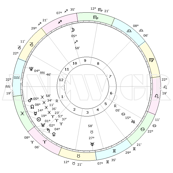 | | ΘΕΣΕΙΣ ΠΛΑΝΗΤΩΝ ΑΣΤΡΟΛΟΓΙΚΟΥ ΧΑΡΤΗ ΤΗΣ ΣΤΙΓΜΗΣ ΑΥΤΗΣ | | | | Πλανήτης | Ζώδιο | Μοίρες | Δεκαήμ. | Σε οίκο | Απόκλιση | | Ακμές των οίκων | | Ηλιος | Ιχθείς | 19°31' | Δεύτερο | 2 | 04 S 09 | | 1ος | 27°17' | Αιγόκερως | | Σελήνη | Τοξότης | 05°19' | Πρώτο | 10 | 26 S 22 | | 2ος | 10°54' | Ιχθείς | | Ερμής | Ιχθείς | 14°14'R | Δεύτερο | 2 | 03 S 05 | | 3ος | 19°45' | Κριός | | Αφροδίτη | Κριός | 04°33' | Πρώτο | 2 | 00 N 44 | | 4ος | 18°42' | Ταύρος | | Αρης | Ιχθείς | 05°55' | Πρώτο | 1 | 10 S 21 | | 5ος | 11°40' | Δίδυμοι | | Δίας | Καρκίνος | 15°05'R | Δεύτερο | 6 | 22 N 56 | | 6ος | 03°00' | Καρκίνος | | Κρόνος | Κριός | 02°56' | Πρώτο | 2 | 00 S 47 | | 7ος | 27°17' | Καρκίνος | | Ουρανός | Ταύρος | 27°58' | Τρίτο | 4 | 19 N 32 | | 8ος | 10°54' | Παρθένος | | Ποσειδώνας | Κριός | 01°23' | Πρώτο | 2 | 00 S 39 | | 9ος | 19°45' | Ζυγός | | Πλούτωνας | Υδροχόος | 04°46' | Πρώτο | 1 | 22 S 50 | | 10ος | 18°42' | Σκορπιός | | Β. Δεσμός | Ιχθείς | 08°34' | Πρώτο | 1 | 08 S 21 | | 11ος | 11°40' | Τοξότης | | Ωροσκόπος | Αιγόκερως | 27°17' | Τρίτο | | | 12ος | 03°00' | Αιγόκερως | | Μεσουράνημα | Σκορπιός | 18°42' | Δεύτερο | | | |